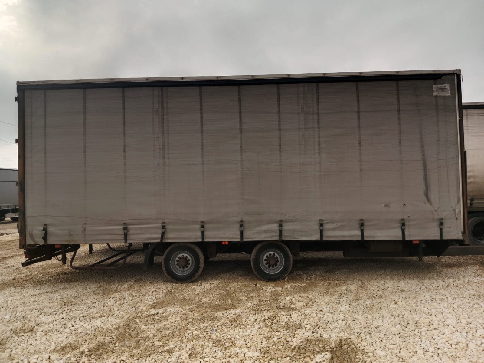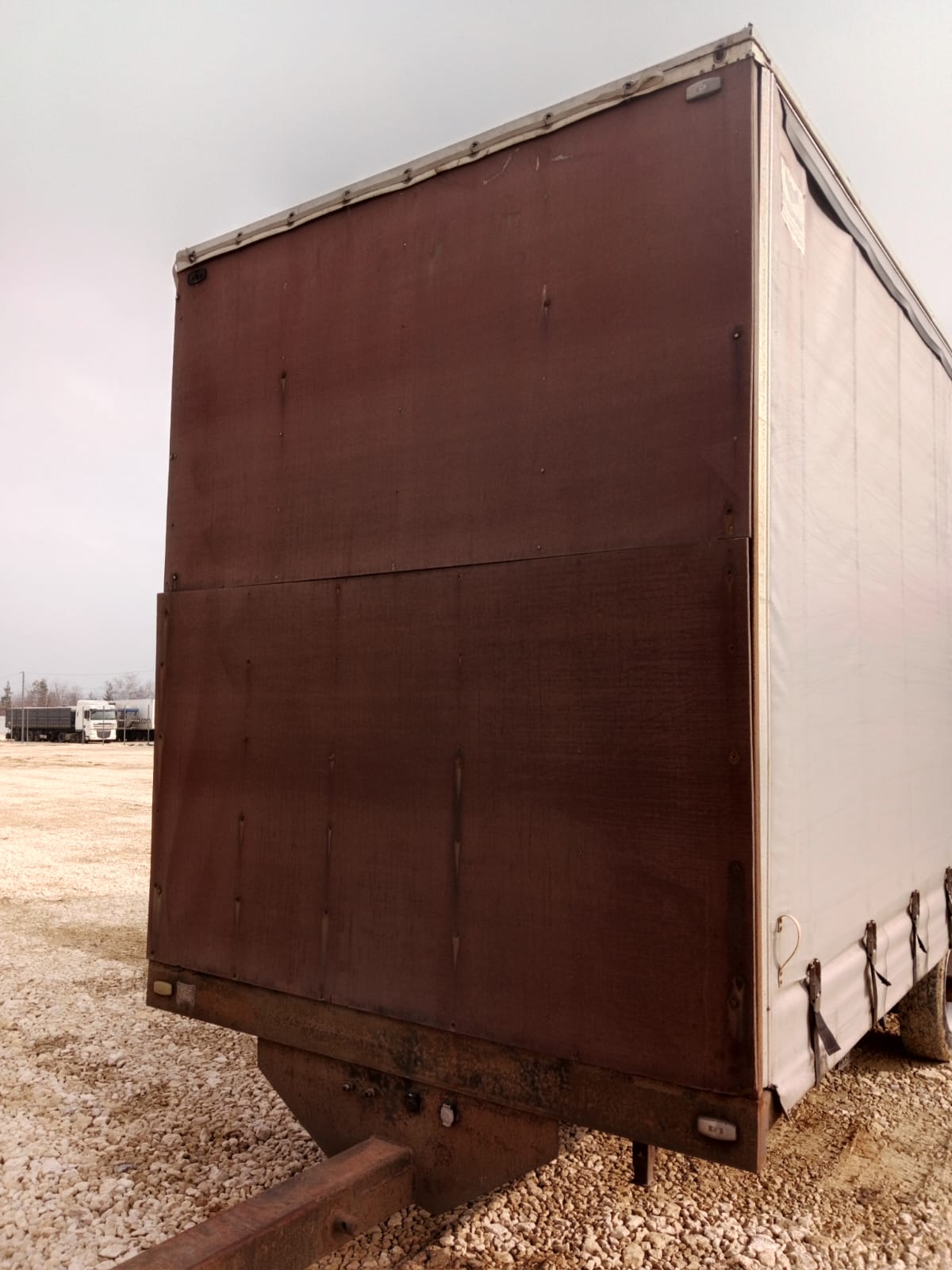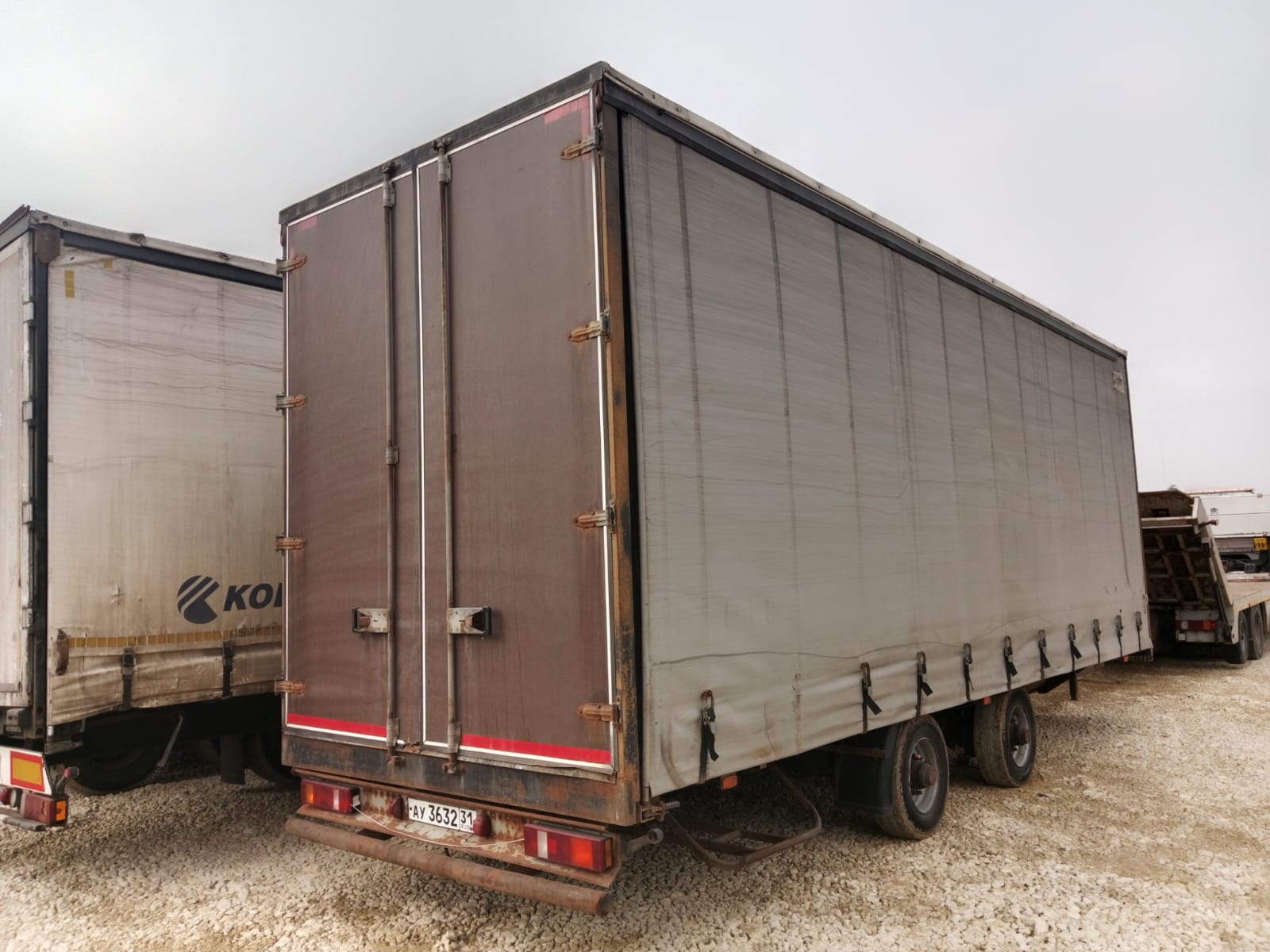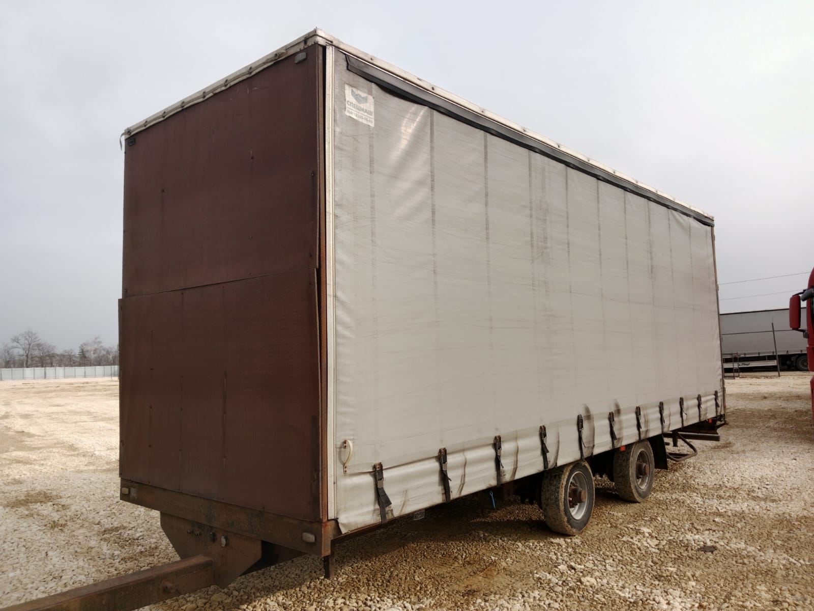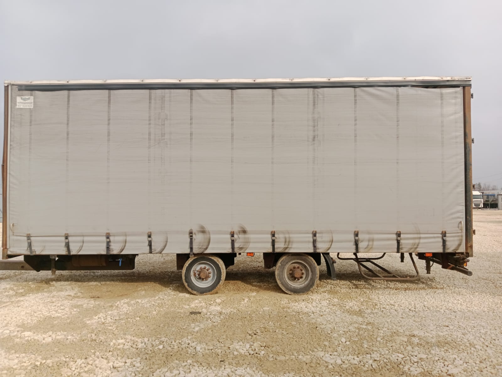 Номер лота: 000007534 Ответственный за реализацию: Голиков Даниил Сергеевич Модель прицепа 8491Т1 Наименование параметра Грузоподъемность, кг 5000 Масса снаряженного прицепа, кг, 3000 Полная масса прицепа, кг, 8000 Габаритные размеры прицепа, не более мм -длина прицепа 11380 -ширина 2540 -высота с тентом 3990 -погрузочная высота 900 Внутренние габаритные размеры фургона , мм -длина 8560 -ширина -высота 2470 3000 База прицепа, мм 1700 Колея колес, мм 2050 Размер шины 235/75/R17,5 КАМА -202 Количество колес, шт. -всего 5 (5) -в том числе запасных 1(1) Обьем ,кубов 65 Подвеска Пневматическая Seylan (Турция) Сцепная петля дышла ROCKINGER Тент ,производство РФ,цвет по согласованию с заказчиком Комплектация Штора,полная растентовка Ящик ЗИП 1 Рама Усиленная ,сделана из стали 09Г2С натяжители тента горизонтальные с редукторами, ремни для тента (по согласованию) Настил пола Влагостойкая финская фанера 18- 21 мм Крепление груза Увязочные петли Оси Granning (Ирландия ) Задний брус безопасности Защитный стальной противоподкатный брус с пластиковыми наконечниками Усиленная передняя стенка + Основной тягач ГАЗОН НЕКСТ, КАМАЗ 4308 МАЗ «зубренок» Валдай