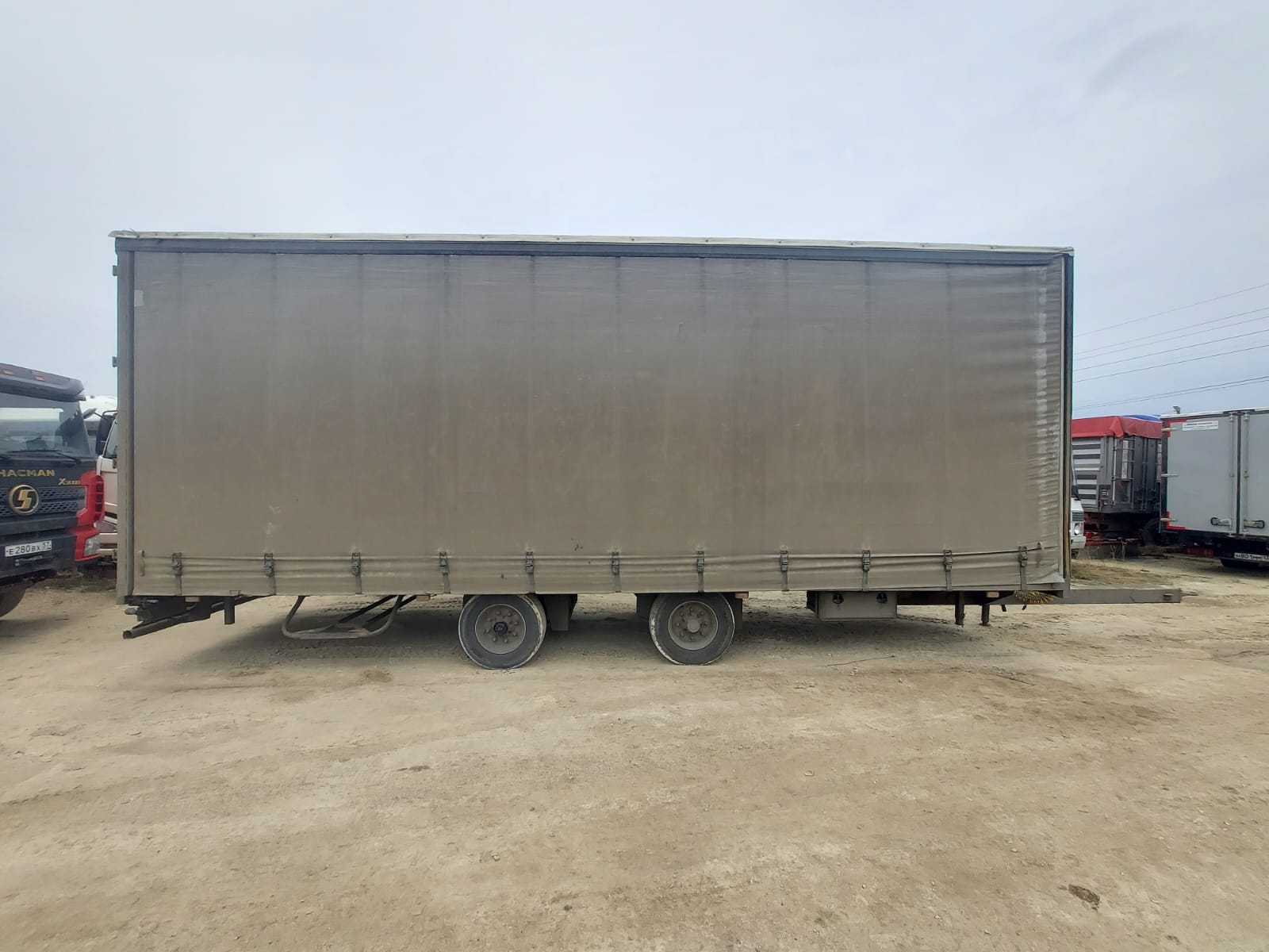 Ответственный Стешинский Денис Технические характеристики прицепа 8491T1 (65 кубов) Модель прицепа 8491Т1 Наименование параметра Грузоподъемность, кг 5000 Масса снаряженного прицепа, кг, 3000 Полная масса прицепа, кг, 8000 Габаритные размеры прицепа, не более мм -длина прицепа 11380 -ширина 2540 -высота с тентом 3990 -погрузочная высота 900 Внутренние габаритные размеры фургона , мм -длина 8560 -ширина -высота 2470 3000 База прицепа, мм 1700 Колея колес, мм 2050 Размер шины 235/75/R17,5 КАМА -202 Количество колес, шт. -всего 5 (5) -в том числе запасных 1(1) Обьем ,кубов 65 Подвеска Пневматическая Seylan (Турция) Сцепная петля дышла ROCKINGER Тент ,производство РФ,цвет по согласованию с заказчиком Комплектация Штора,полная растентовка Ящик ЗИП 1 Рама Усиленная ,сделана из стали 09Г2С натяжители тента горизонтальные с редукторами, ремни для тента (по согласованию) Настил пола Влагостойкая финская фанера 18- 21 мм Крепление груза Увязочные петли Оси Granning (Ирландия ) Задний брус безопасности Защитный стальной противоподкатный брус с пластиковыми наконечниками Усиленная передняя стенка