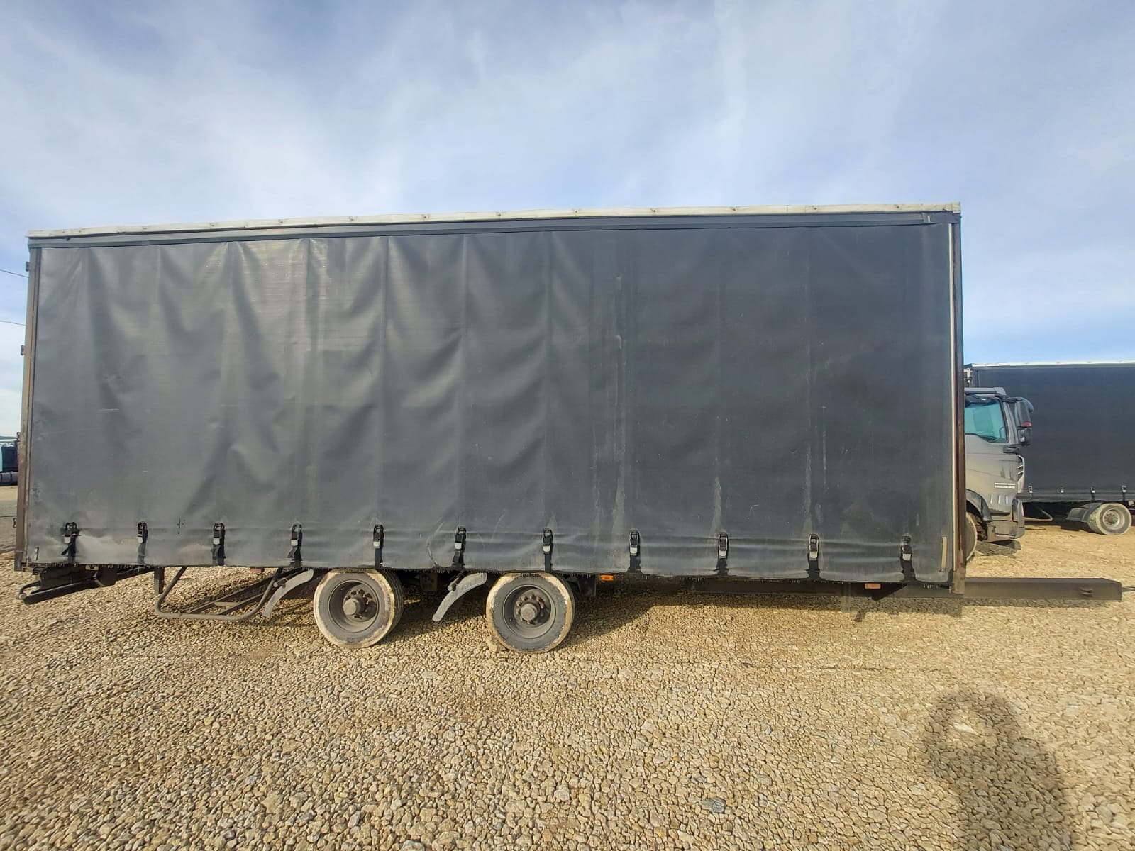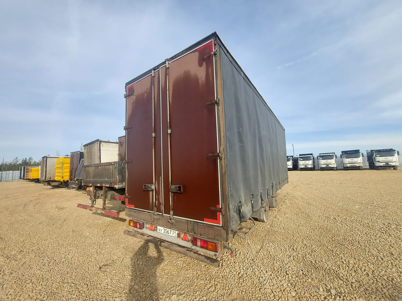 Номер лота: 000007535 Ответственный за реализацию: Голиков Даниил Сергеевич Модель прицепа 8491Т1 Наименование параметра Грузоподъемность, кг 5000 Масса снаряженного прицепа, кг, 3000 Полная масса прицепа, кг, 8000 Габаритные размеры прицепа, не более мм -длина прицепа 11380 -ширина 2540 -высота с тентом 3990 -погрузочная высота 900 Внутренние габаритные размеры фургона , мм -длина 8560 -ширина -высота 2470 3000 База прицепа, мм 1700 Колея колес, мм 2050 Размер шины 235/75/R17,5 КАМА -202 Количество колес, шт. -всего 5 (5) -в том числе запасных 1(1) Обьем ,кубов 65 Подвеска Пневматическая Seylan (Турция) Сцепная петля дышла ROCKINGER Тент ,производство РФ,цвет по согласованию с заказчиком Комплектация Штора,полная растентовка Ящик ЗИП 1 Рама Усиленная ,сделана из стали 09Г2С натяжители тента горизонтальные с редукторами, ремни для тента (по согласованию) Настил пола Влагостойкая финская фанера 18- 21 мм Крепление груза Увязочные петли Оси Granning (Ирландия ) Задний брус безопасности Защитный стальной противоподкатный брус с пластиковыми наконечниками Усиленная передняя стенка + Основной тягач ГАЗОН НЕКСТ, КАМАЗ 4308 МАЗ «зубренок» Валдай