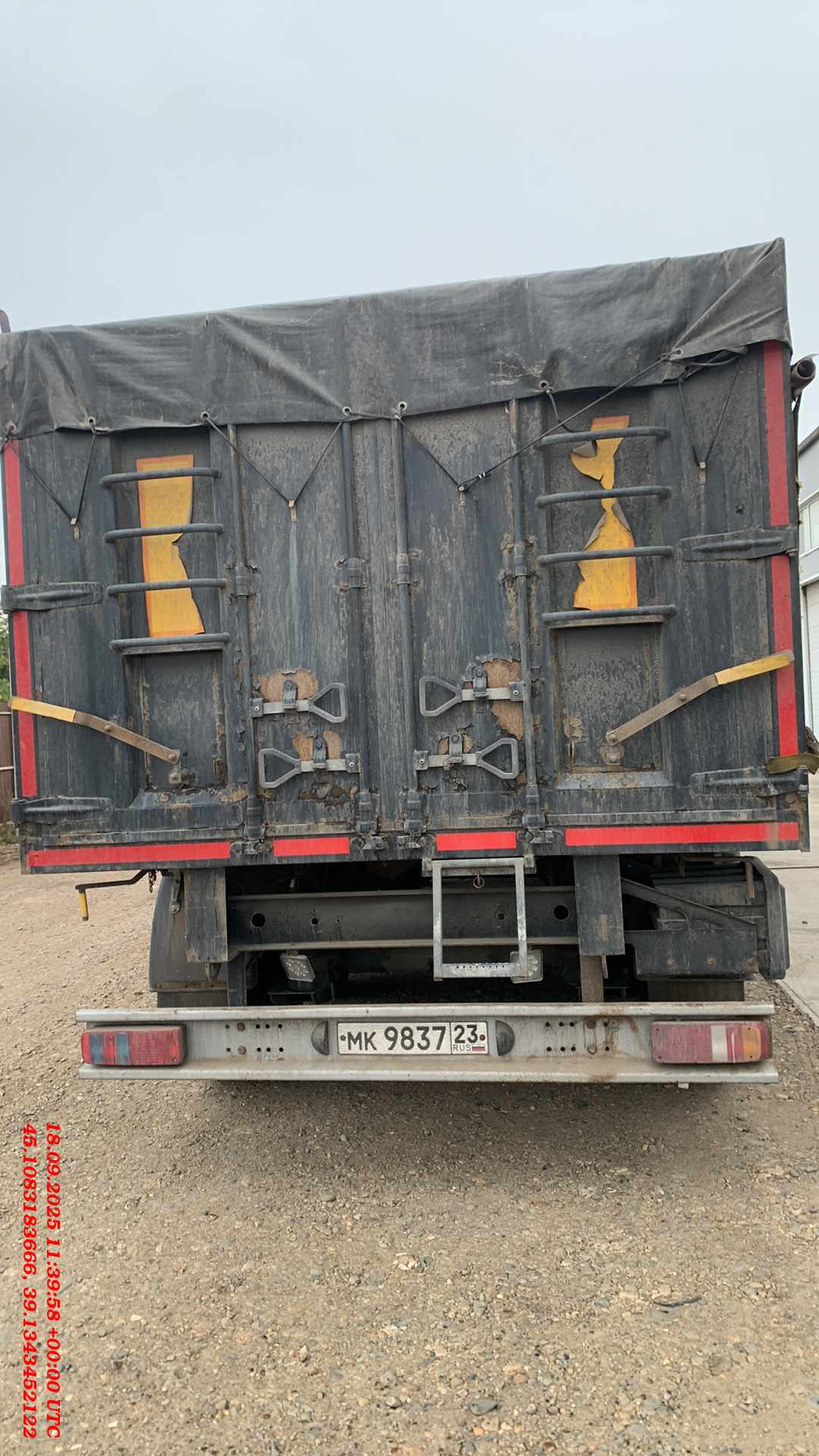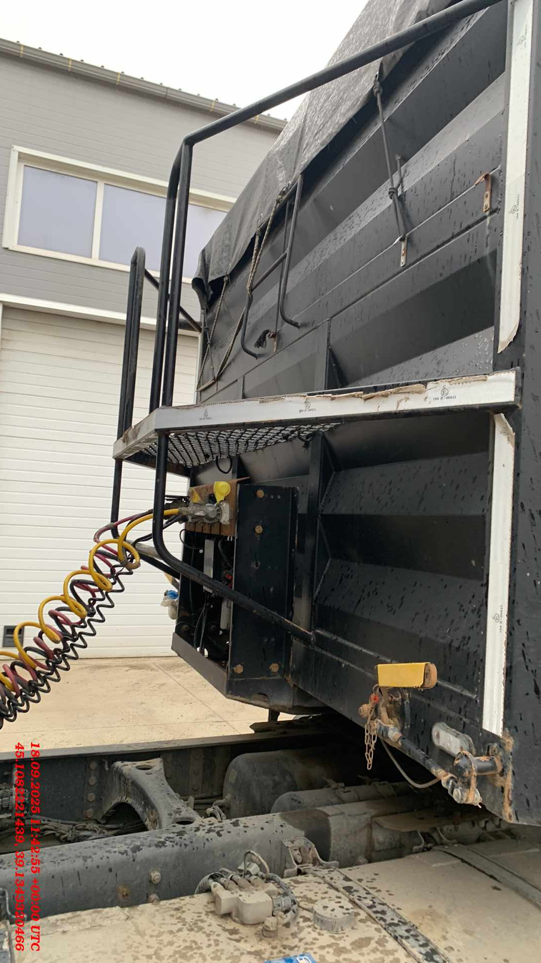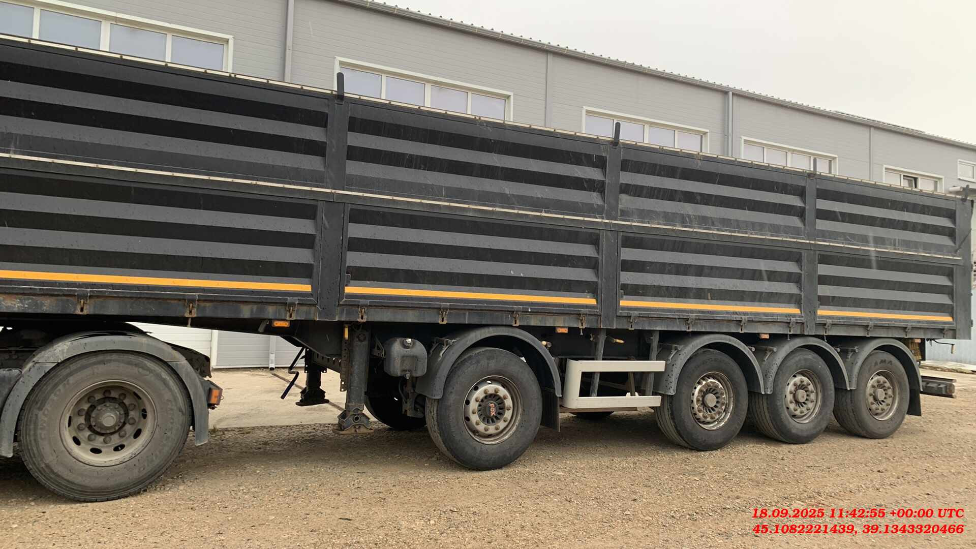 1. Технические характеристики Внутренний объем кузова (м³) 46 Высота седельно-сцепного устройства минимальная (мм) 1150 Грузоподъемность полуприцепа технически допустимая(кг) 48000 Нагрузка на ССУ допустимая (кг) 12000 Максимальная полная масса автопоезда (кг) 44000 Расстояние от крайней передней точки до шкворня (мм) 820 Снаряженная масса полуприцепа (кг) ±5% 7000 Передний радиус обметания, не более (мм) 2040 Межосевое расстояние (мм) 2510/1310/1310 Колесная колея (мм) 2040 Нагрузка на ось, допустимая (кг) 9000/7500/7500/7500 Колея кронштейнов подвески (мм) 1300 2. Техническое описание Шасси • Сварная рама усиленной конструкции из двух лонжеронов двутаврового сечения из стали 09г2С/10ХСНД (соответствует Hardox 600/700) • Опорное устройство двухскоростное с ручным односторонним приводом BPW (Германия), грузоподъемность 24 т, ручка управления с правой стороны; • Шкворень BPW (Германия), 2 дюйма (соответствует ЕЭК ООН № 55.00); • Два противооткатных упора; • Съемная корзина запасного колеса; • Боковая алюминиевая защита; • Заднее защитное устройство, с рамкой регистрационного знака; • Пластиковые крылья Domar (Италия) над каждым колесом; • Умывальник с мыльницей Daken (Италия); • Инструментальный ящик Daken (Италия); Кузов • Кузов объемом 46 м3, с выгрузкой на левую и правую сторону; • Толщина профиля борта — 1,5 мм - сталь 8ПС; • Толщина настила пола — 2,5 мм - сталь 8ПС; • Откидные боковые борта высотой нижней части кузова (с левой и правой стороны) с верхней навеской; • Распашные ворота (оборудованы ступеньками для обслуживания полога); • Запорная фурнитура бортов (СЗА); • Каждый борт открывается отдельно с каждой стороны; • Резиновая влагозащитная полоса в верхней части откидных бортов; • Ступеньки на передней стенке внутри кузова для доступа внутрь; • Стяжки внутри кузова (съемные); • Резиновые уплотнители по внутреннему периметру бортов; • Светоотражающая маркировка. Подвеска • 4 х 9000 кг FOX (Иран); • Пневматическая подвеска, FOX (Иран); • Механизм подъема первой и четвертой оси; • Тормозные механизмы дискового типа. Шины и диски • Ошиновка односкатная (колесная формула 8+1 (запасное); • Шины размерности 385/65 R22.5; • Диски стальные Тормозная система • Пневматическая электронная тормозная система WABCO; • Датчики ABS на двух из четырех осей; • Стальные воздушные ресиверы; • Тормозные камеры мембранного типа; • Стояночная тормозная система полуавтоматического типа с пружинными энергоаккумуляторами на трех осях; • Пневматические соединительные головки для подключения на гибких шлангах; Электрооборудование • Электрооборудование (Германия/ Австрия/Россия); • Две 7-ми- клемовые и одна 15-ти-клемовая розетки; • Розетка ABS; • Два задних комбинированных фонаря с функцией габаритных огней, указателей поворотов, противотуманных фонарей, сигналов торможения, фонарей заднего хода и освещения регистрационного знака; • Два фонаря полного габарита на гибкой основе; • 2 передних габаритных фонаря, совмещенных с белыми световозвращателями; • 8 боковых габаритных фонарей, совмещенных с оранжевыми световозвращателями; • 2 задних световозвращателя красного цвета треугольной формы; • Дополнительный фонарь заднего хода — 1 шт. Полог и система крепления • Полог (черный) из ПВХ плотностью 650-750 гр./м² • Кронштейны-ограничители смотанного полога на стойках с правой (левой) стороны кузова; • Полог крепится на боковую