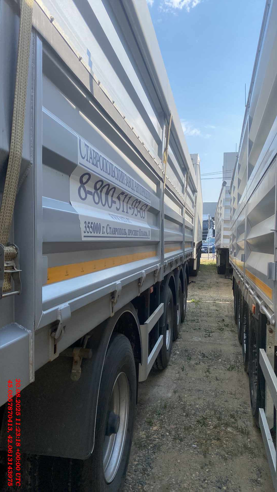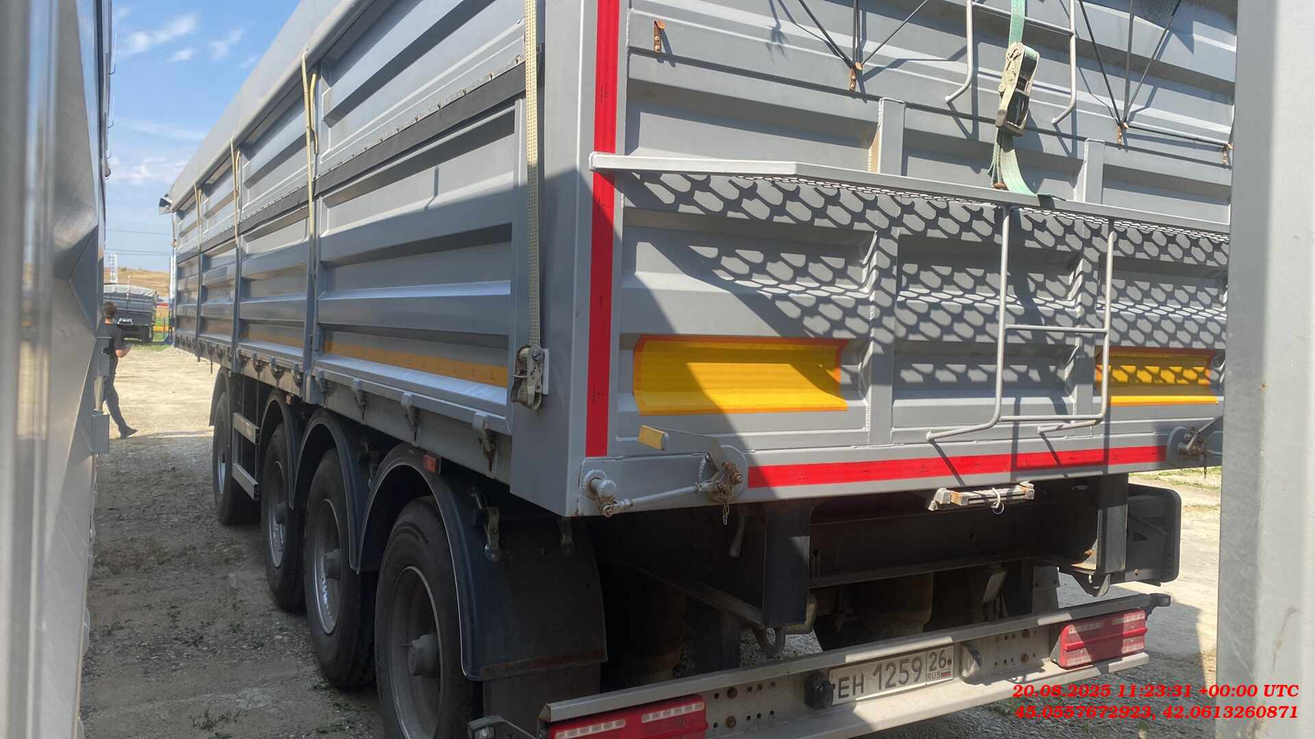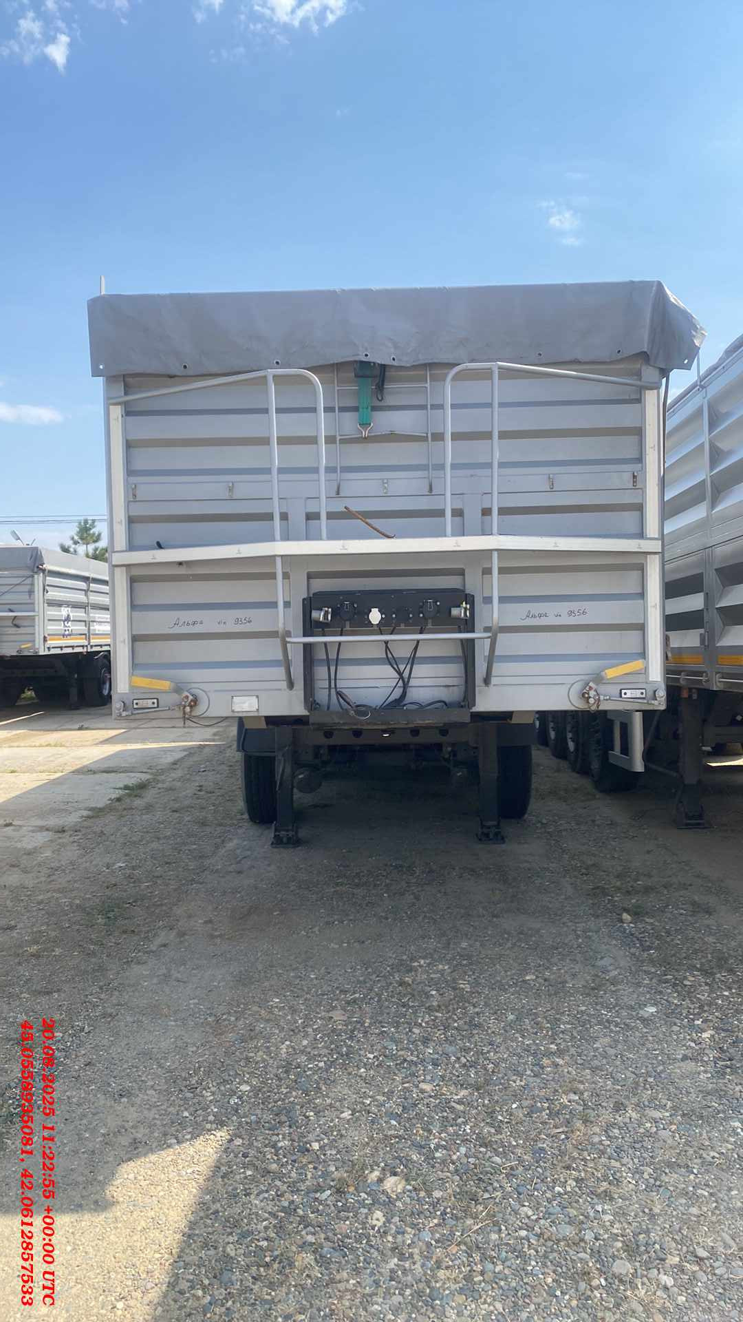Бортовой 4-х осный полуприцеп предназначен для перевозки различных видов сыпучих сельскохозяйственных грузов плотностью 0,25 — 0,85 т/м³. Конструкция и форма бортов обеспечивает высокую жесткость платформы и предотвращает ее деформацию и потерю груза даже при значительном перегрузе. Размеры полуприцепа (ориентировочно) Длинна габаритная (мм) Ширина габаритная (мм) Высота габаритная (мм) Внутренняя длина кузова (мм) Внутренняя ширина кузова (мм) Внутренняя высота кузова (мм) 11130 2550 3250 10500 2480 1800 1. Технические характеристики Внутренний объем кузова (м³) 46 Высота седельно-сцепного устройства минимальная (мм) 1150 Грузоподъемность полуприцепа технически допустимая(кг) 48000 Нагрузка на ССУ допустимая (кг) 12000 Максимальная полная масса автопоезда (кг) 44000 Расстояние от крайней передней точки до шкворня (мм) 670 Снаряженная масса полуприцепа (кг) ±5% 6600 Передний радиус обметания, не более (мм) 2040 Межосевое расстояние (мм) 2510/1310/1310 Колесная колея (мм) 2040 Нагрузка на ось, допустимая (кг) 9000/7500/7500/7500 Колея кронштейнов подвески (мм) 1300 2. Техническое описание Шасси • Сварная рама усиленной конструкции из двух лонжеронов двутаврового сечения из стали 09г2С/10ХСНД (соответствует Hardox 600/700) • Опорное устройство двухскоростное с ручным односторонним приводом BPW (Германия), грузоподъемность 24 т, ручка управления с правой стороны; • Шкворень BPW (Германия), 2 дюйма (соответствует ЕЭК ООН № 55.00); • Два противооткатных упора; • Съемная корзина запасного колеса; • Боковая алюминиевая защита; • Заднее защитное устройство, с рамкой регистрационного знака; • Пластиковые крылья Domar (Италия) над каждым колесом; • Умывальник с мыльницей Daken (Италия); • Инструментальный ящик Daken (Италия); Кузов • Кузов объемом 46 м3, с выгрузкой на левую и правую сторону; • Толщина профиля борта — 1,5 мм - сталь 8ПС; • Толщина настила пола — 2,5 мм - сталь 8ПС; • Откидные боковые борта высотой 850 мм в нижней части кузова (с левой и правой стороны) с верхней навеской (4 борта на каждой стороне); • Распашные ворота (оборудованы ступеньками для обслуживания полога); • Запорная фурнитура бортов (binotto Италия / Hestal Германия / СЗА); • Каждый борт открывается отдельно с каждой стороны; • Резиновая влагозащитная полоса в верхней части откидных бортов; • Ступеньки на передней стенке внутри кузова для доступа внутрь; • Стяжки внутри кузова (съемные); • Резиновые уплотнители по внутреннему периметру бортов; • Светоотражающая маркировка. Подвеска • 4 х 9000 кг BPW (Германия); • Пневматическая подвеска BPW (Германия) - легкие осевые балки с высокими прочностными характеристиками. • Механизм подъема первой и четвертой оси; • Тормозные механизмы дискового типа. Шины и диски • Ошиновка односкатная (колесная формула 8+1 (запасное); • Шины размерности 385/65 R22.5; • Диски стальные Тормозная система • Пневматическая электронная тормозная система WABCO/Knor-Bremse; • Датчики ABS на двух из четырех осей; • Стальные воздушные ресиверы; • Тормозные камеры мембранного типа; • Стояночная тормозная система полуавтоматического типа с пружинными энергоаккумуляторами на трех осях; • Пневматические соединительные головки для подключения на гибких шлангах; Электрооборудование • Электрооборудование (Германия/ Австрия/Россия); • Две 7-ми- клемовые и одна 15-ти-клемовая розетки; • Розетка ABS; • Два задних комбинированных фонаря с функцией габаритных 