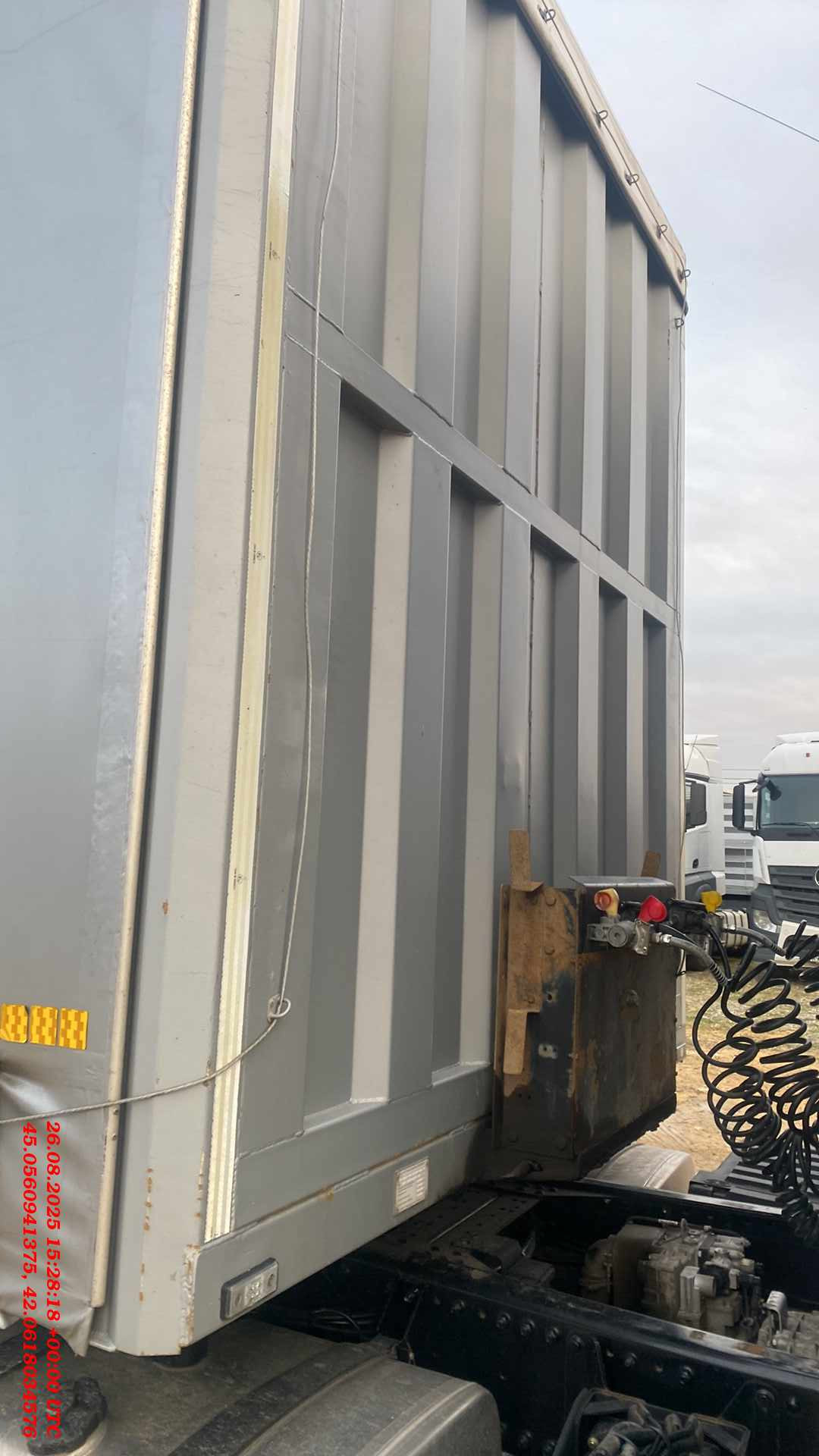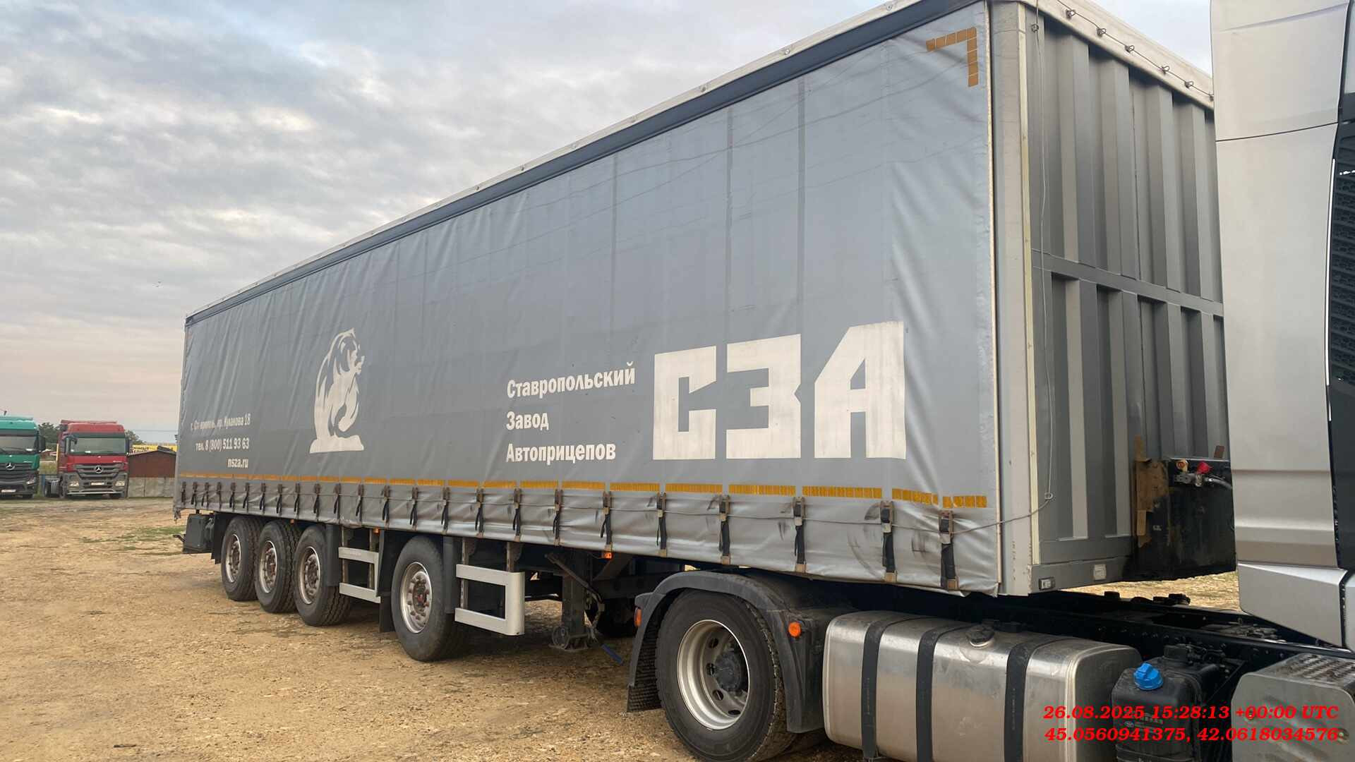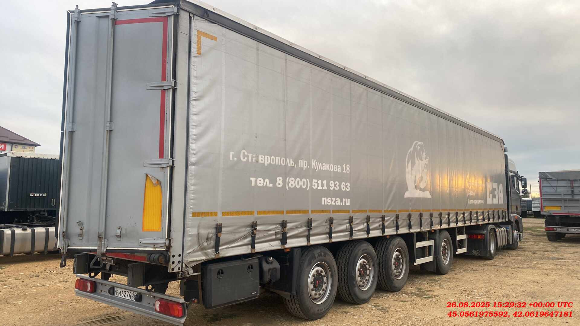 Длинна габаритная (мм) Ширина габаритная (мм) Высота габаритная (мм) Внутренняя длина кузова (мм) Внутренняя ширина кузова (мм) Внутренняя высота кузова (мм) 13600 2550 4000 13300 2480 2650 1. Технические характеристики Внутренний объем кузова (м³) 87,4 Высота седельно-сцепного устройства минимальная (мм) 1150 Грузоподъемность полуприцепа (кг) 40400 Нагрузка на ССУ допустимая (кг) 12000 Максимальная полная масса полуприцепа (кг) 48000 Расстояние от крайней передней точки до шкворня (мм) 1600 Снаряженная масса полуприцепа (кг) ±5% 7400 Передний радиус обметания, не более (мм) 2040 Межосевое расстояние (мм) 2510/1310/1310 Колесная колея (мм) 2040 Нагрузка на ось, допустимая по закону(кг) 9000/7500/7500/7500 Колея кронштейнов подвески (мм) 1300 2. Техническое описание Шасси • Сварная рама усиленной конструкции из двух лонжеронов двутаврового сечения из стали 09г2С/10ХСНД (соответствует Hardox 600/700) • Опорное устройство двухскоростное с ручным односторонним приводом BPW/JOST (Германия), грузоподъемность 24 т, ручка управления с правой стороны; • Шкворень BPW/JOST (Германия), 2 дюйма (соответствует ЕЭК ООН № 55.00); • Два противооткатных упора; • Съемная корзина запасного колеса (на два колеса); • Боковая алюминиевая защита; • Заднее защитное устройство, с рамкой регистрационного знака; • Пластиковые крылья Domar (Италия) над каждым колесом; • Умывальник с мыльницей Daken (Италия); • Инструментальный ящик Daken (Италия); Шторная конструкция • Загрузочное пространство объемом 87,4 м3; • Металлическая отбортовка; • Толщина профиля борта — 1,5 мм - сталь 8ПС; • Толщина настила пола — 27 мм — влагостойкая, ламинированная фанера; • Стоийки шторной конструкции литые (Hestal – Германия); • Сдвижная крыша с возможностью верхней загрузки (Hestal – Германия); • Боковые стенки шторного типа (Hestal – Германия); • Полог шторной конструкции (цвет выбор заказчика) из ПВХ ткани плотностью 650-750 гр./м²; • Распашные ворота (оборудованы запирающими механизмами Дельта — 4 шт.); • Запорная фурнитура бортов (binotto Италия/ Hestal Германия / СЗА); • Фурнитура крепления полога (Hestal – Германия); • Светоотражающая маркировка. Подвеска • 4 х 9000 кг BPW, SAF (Германия), FOX (Иран), на выбор производителя; • Пневматическая подвеска BPW, SAF (Германия), FOX (Иран), на выбор производителя; • Механизм подъема первой и четвертой оси; • Тормозные механизмы дискового типа; • Управление подъемом осей из кабины. Шины и диски • Ошиновка односкатная (колесная формула 8+1 (запасное); • Шины размерности 385/65 R22.5; • Диски стальные; Тормозная система • Пневматическая электронная тормозная система WABCO/Knor-Bremse; • Датчики ABS на двух из четырех осей; • Стальные воздушные ресиверы; • Тормозные камеры мембранного типа; • Стояночная тормозная система полуавтоматического типа с пружинными энергоаккумуляторами на трех осях; • Пневматические соединительные головки для подключения на гибких шлангах; • Розетка ABS/ Электрооборудование • Электрооборудование Германия/Россия/Австрия; • Две 7-ми- клемовые и одна 15-ти-клемовая розетки; • Розетка ABS; • Два задних комбинированных фонаря с функцией габаритных огней, указателей поворотов, противотуманных фонарей, сигналов торможения, фонарей заднего хода и освещения регистрационного знака; • Два фонаря полного габарита на гибкой основе; • 2 передних габаритных фонаря, совмещенных с белыми световозвращателями; • 8 боковых габаритных фонарей, совмещенных с ор