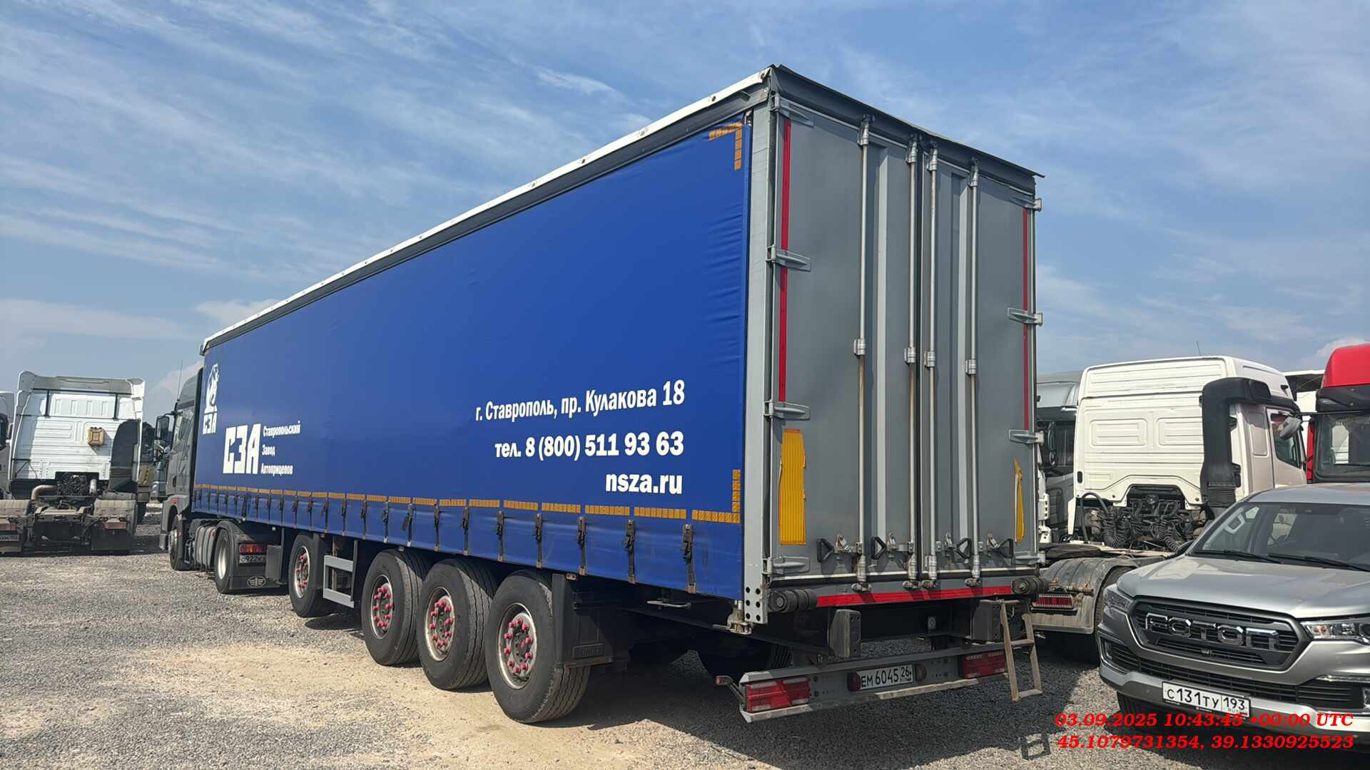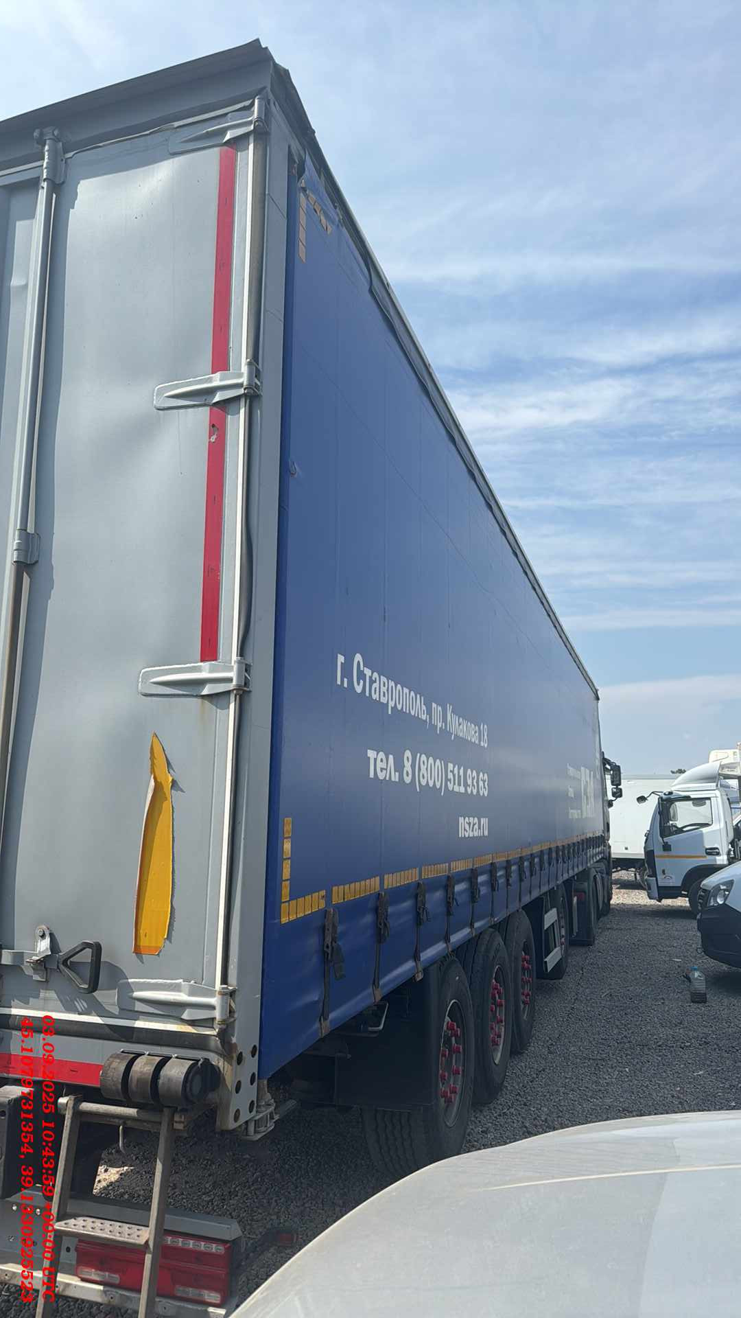 Магистральный 4-х осный полуприцеп предназначен для перевозки различных видов паллетированных грузов, которые нуждаются в защите от воздействия внешней среды: осадков, грязи и избыточной влажности по дорогам общего пользования. Конструкция отличается повышенной прочностью. У данного полуприцепа крыша и бока сдвигаются отдельно, что очень удобно при погрузке-разгрузке как с боков полуприцепа, так и с верхней части. Длинна габаритная (мм) 13600 Ширина габаритная (мм) 2550 Высота габаритная (мм) 4000 Внутренняя длина кузова (мм) 13300 Внутренняя ширина кузова (мм) 2480 Внутренняя высота кузова (мм) 2650 Внутренний объем кузова (м³) 87,4 Грузоподъемность полуприцепа (кг) 40400 Максимальная полная масса полуприцепа (кг) 48000 Снаряженная масса полуприцепа (кг) ±5% 7400 Межосевое расстояние (мм) 2510/1310/1310 Нагрузка на ось, допустимая по закону(кг) 9000/7500/7500/7500 Высота седельно-сцепного устройства минимальная (мм) 1150 Нагрузка на ССУ допустимая (кг) 12000 Расстояние от крайней передней точки до шкворня (мм) 1600 Передний радиус обметания, не более (мм) 2040 Колесная колея (мм) 2040 Колея кронштейнов подвески (мм) 1300 • Опорное устройство двухскоростное с ручным односторонним приводом BPW/JOST (Германия), грузоподъемность 24 т, ручка управления с правой стороны; • Шкворень BPW/JOST (Германия), 2 дюйма (соответствует ЕЭК ООН № 55.00); • Два противооткатных упора; • Съемная корзина запасного колеса (на два колеса); • Боковая алюминиевая защита; • Заднее защитное устройство, с рамкой регистрационного знака; • Пластиковые крылья Domar (Италия) над каждым колесом; • Умывальник с мыльницей Daken (Италия); • Инструментальный ящик Daken (Италия); • Загрузочное пространство объемом 87,4 м3; • Металлическая отбортовка; • Толщина профиля борта — 1,5 мм - сталь 8ПС; • Толщина настила пола — 27 мм — влагостойкая, ламинированная фанера; • Стоийки шторной конструкции литые (Hestal – Германия); • Сдвижная крыша с возможностью верхней загрузки (Hestal – Германия); • Боковые стенки шторного типа (Hestal – Германия); • Полог шторной конструкции (цвет выбор заказчика) из ПВХ ткани плотностью 650-750 гр./м²; • Распашные ворота (оборудованы запирающими механизмами Дельта — 4 шт.); • Запорная фурнитура бортов (binotto Италия/ Hestal Германия / СЗА); • Фурнитура крепления полога (Hestal – Германия); • Светоотражающая маркировка. Подвеска • 4 х 9000 кг BPW, SAF (Германия), FOX (Иран), на выбор производителя; • Пневматическая подвеска BPW, SAF (Германия), FOX (Иран), на выбор производителя; • Механизм подъема первой и четвертой оси; • Тормозные механизмы дискового типа; • Управление подъемом осей из кабины. Шины и диски • Ошиновка односкатная (колесная формула 8+1 (запасное); • Шины размерности 385/65 R22.5; • Диски стальные; Тормозная система • Пневматическая электронная тормозная система WABCO/Knor-Bremse; • Датчики ABS на двух из четырех осей; • Стальные воздушные ресиверы; • Тормозные камеры мембранного типа; • Стояночная тормозная система полуавтоматического типа с пружинными энергоаккумуляторами на трех осях; • Пневматические соединительные головки для подключения на гибких шлангах; • Розетка ABS/ Электрооборудование • Электрооборудование Германия/Россия/Австрия; • Две 7-ми- клемовые и одна 15-ти-клемовая розетки; • Розетка ABS; • Два задних комбинированных фонаря с функцией габаритных огней, указателей поворотов, противотуманных фонарей, сигналов торможения, фонарей за