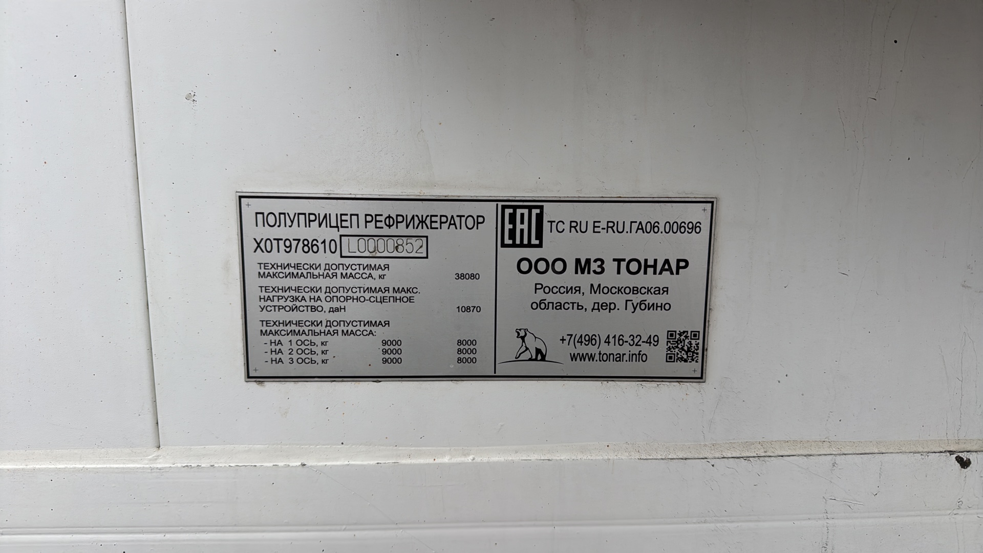Номер лота: 000018236 📍Место осмотра: г. Краснодар, п. Дружелюбный, ул. Железнодорожная, 1б. ХАРАКТЕРИСТИКИ ТОНАР Габаритные размеры (ДхШхВ), мм – 13850х2600х4000 Размеры кузова-фургона внутренние (ДхШхВ), мм – 13420х2460х2582 Объем кузова, куб. м – 85 Вместимость – 33 EPAL Высота ССУ, мм – 1150 Масса снаряженного полуприцепа, кг – 8860 Нагрузка на ССУ, кг – 10870 Масса перевозимого груза(не более), кг – 29320 Оси колес – Тонар, шины бескамерные 385/65 R22.5 (полуприцеп) 2020, Тормоза – дисковые, WABCO Подвеска – зависимая, на продольных упругих рычагах с пневматическими упругими элементами и телескопическими гидравлическими амортизаторами, передняя ось подъемная Холодильная установка Carrier Vector 1550 🅰️ Мы — компания Альфа-Лизинг. Более 27 лет работаем с предпринимателями. Покупка возможна удобным для вас способом — оформление в лизинг или покупка за собственные средства. 💵 Стоимость в объявлениях уже включает НДС. У нас более 70 офисов, наши специалисты помогут заключить договор в любом городе России. ☎️ Записаться на осмотр и узнать более подробную информацию вы можете по телефону, указанному в объявлении. Звоните! Все представленные автомобили находятся в наличии в нашем автопарке. ✔️ Техника имеет прозрачную историю эксплуатации ✔️ Прошла необходимые проверки ✔️ Доступна к покупке в короткие сроки Почему мы? ✅ Работаем с бизнесом любого размера ✅ Оформляем лизинг на выгодных вам условиях и с авансом от 0% ✅ Предоставляем технику в любом уголке России ✅ Быстрое оформление по 2 документам ✅ Скидка 5% для клиентов Альфа-Банка ✅ Гарантируем юридическую чистоту сделки и безопасность приобретения ❤️ Добавьте объявление в избранное, чтобы не потерять! Полный каталог автомобилей с пробегом доступен на нашем сайте в разделе «Техника с пробегом».