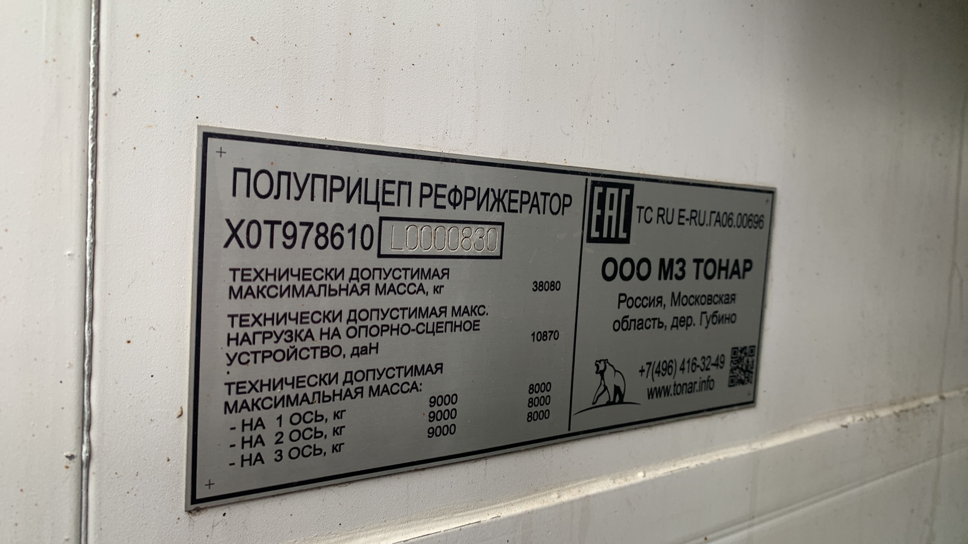 Номер лота: 000018235 📍Место осмотра: г. Краснодар, п. Дружелюбный, ул. Железнодорожная, 1б. ХАРАКТЕРИСТИКИ ТОНАР Габаритные размеры (ДхШхВ), мм – 13850х2600х4000 Размеры кузова-фургона внутренние (ДхШхВ), мм – 13420х2460х2582 Объем кузова, куб. м – 85 Вместимость – 33 EPAL Высота ССУ, мм – 1150 Масса снаряженного полуприцепа, кг – 8860 Нагрузка на ССУ, кг – 10870 Масса перевозимого груза(не более), кг – 29320 Оси колес – Тонар, шины бескамерные 385/65 R22.5 (полуприцеп) 2020, Тормоза – дисковые, WABCO Подвеска – зависимая, на продольных упругих рычагах с пневматическими упругими элементами и телескопическими гидравлическими амортизаторами, передняя ось подъемная Холодильная установка Carrier Vector 1550 🅰️ Мы — компания Альфа-Лизинг. Более 27 лет работаем с предпринимателями. Покупка возможна удобным для вас способом — оформление в лизинг или покупка за собственные средства. 💵 Стоимость в объявлениях уже включает НДС. У нас более 70 офисов, наши специалисты помогут заключить договор в любом городе России. ☎️ Записаться на осмотр и узнать более подробную информацию вы можете по телефону, указанному в объявлении. Звоните! Все представленные автомобили находятся в наличии в нашем автопарке. ✔️ Техника имеет прозрачную историю эксплуатации ✔️ Прошла необходимые проверки ✔️ Доступна к покупке в короткие сроки Почему мы? ✅ Работаем с бизнесом любого размера ✅ Оформляем лизинг на выгодных вам условиях и с авансом от 0% ✅ Предоставляем технику в любом уголке России ✅ Быстрое оформление по 2 документам ✅ Скидка 5% для клиентов Альфа-Банка ✅ Гарантируем юридическую чистоту сделки и безопасность приобретения ❤️ Добавьте объявление в избранное, чтобы не потерять! Полный каталог автомобилей с пробегом доступен на нашем сайте в разделе «Техника с пробегом».