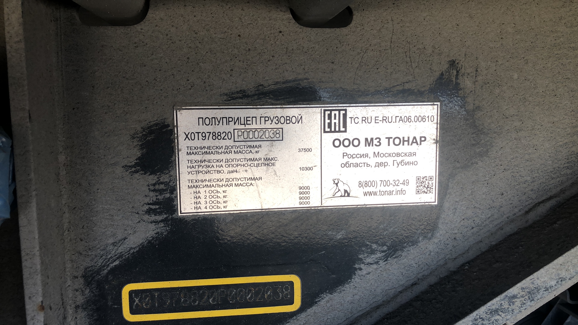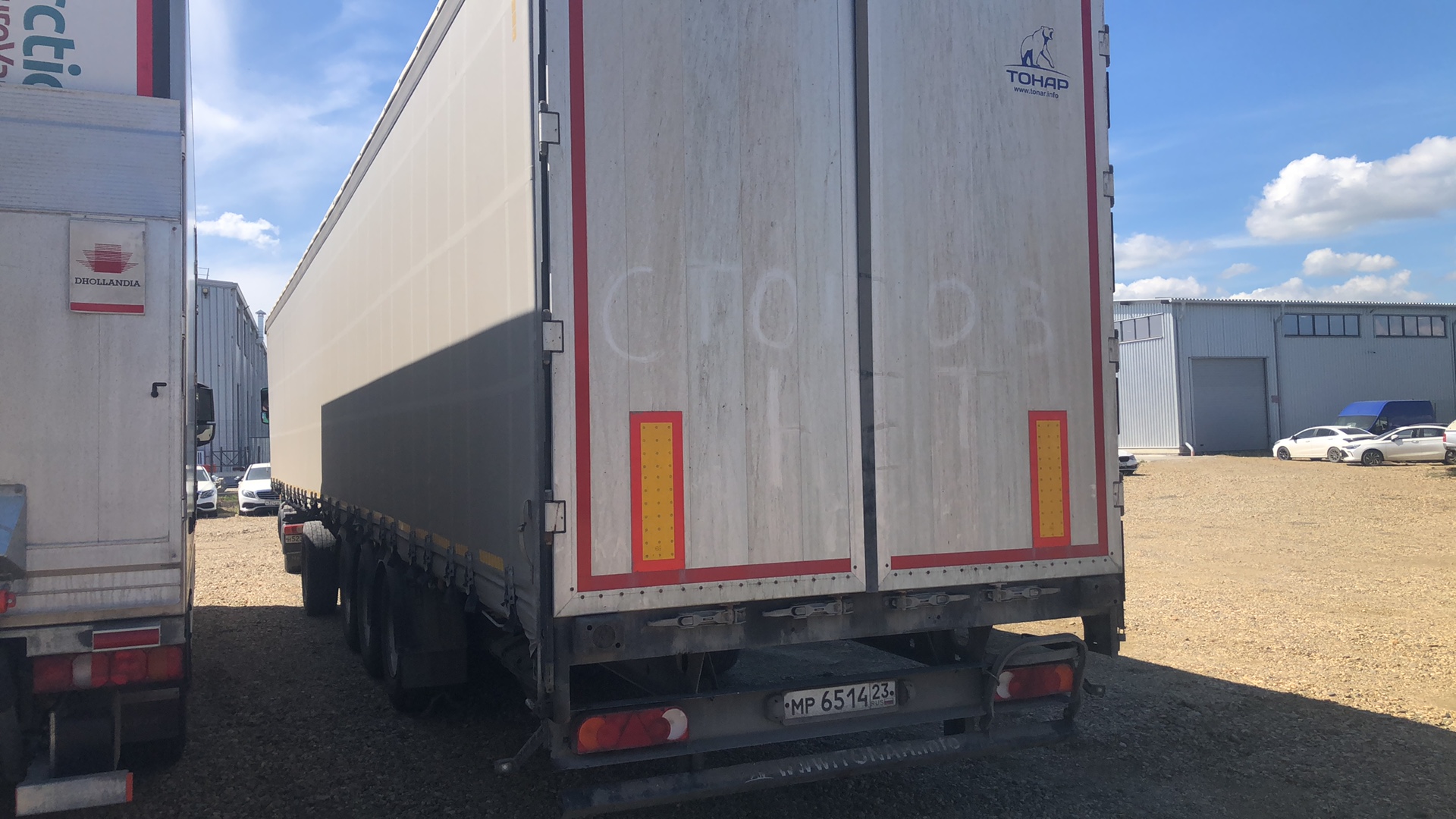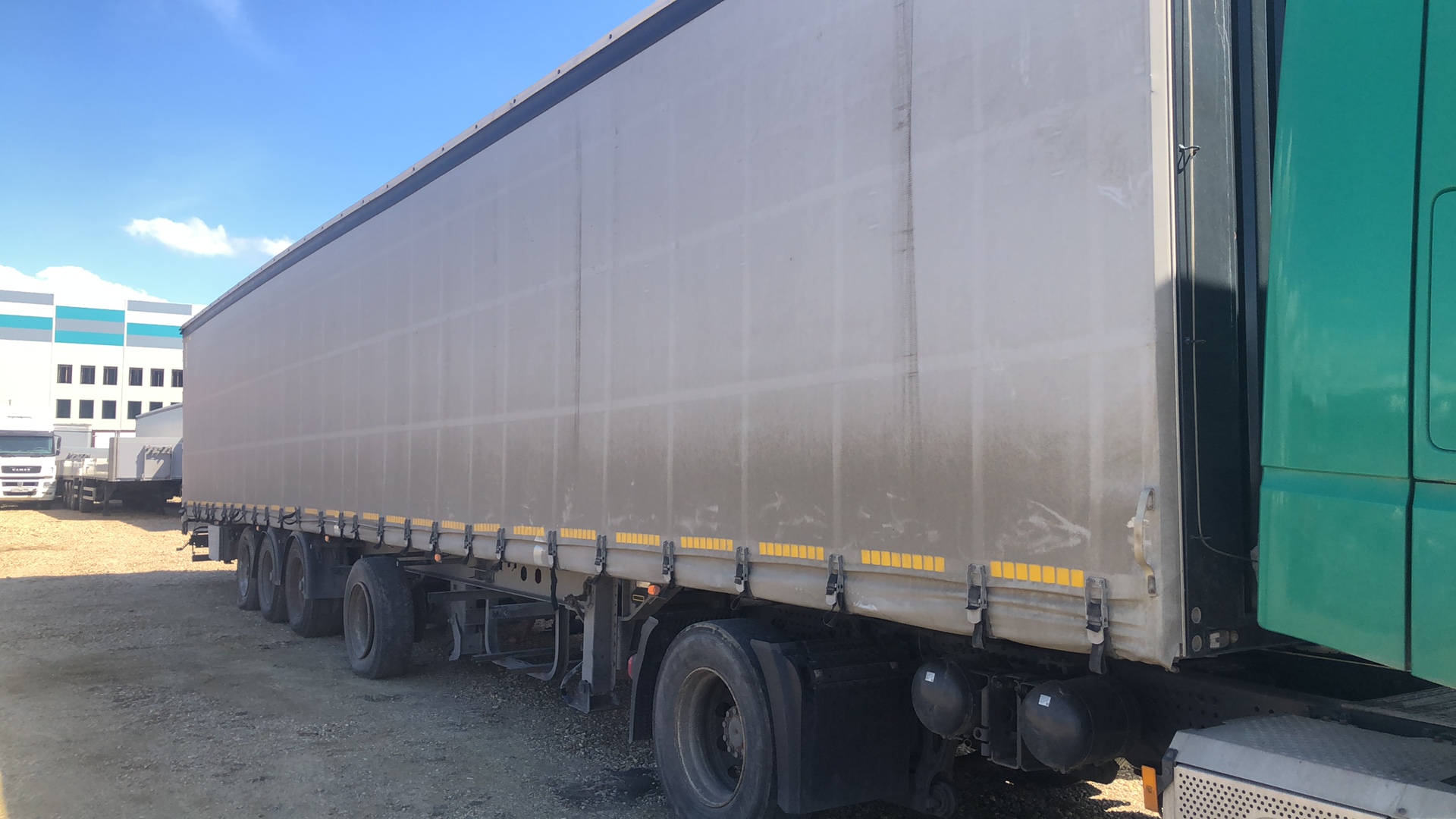 Номер лота 000009999 Ответственный Калошин Михаил Полуприцеп шторно-бортовой ТОНАР модель: T4-16V (97882) Полуприцеп Т4-16V/VK предназначен для перевозки грузов массой до 28 200 килограммов, при этом объем кузова равен 110,6 кубическим метрам. Длина (внутренние размеры), мм. 16 500 Ширина (внутренние размеры), мм. 2 480 Высота (внутренние размеры), мм. 2 700 Нагрузка на колёсную тележку, кг. 22 500+9 000 Масса перевозимого груза, кг. 28 200 Масса снаряженного полуприцепа не более, кг. 9 300 Высота седельно-сцепного устройства тягача, мм. 1 150 Нагрузка на ССУ тягача 10 301 Габаритная длина полуприцепа, мм. 16 872 Подвеска зависимая, на продольных упругих рычагах с пневматическими упругими элементами и телескопическими гидравлическими амортизаторами Оси колес Тонар Подъёмная ось 1 и 2 Шины бескамерные 385/65R 22,5 Опорное устройство на 24т.