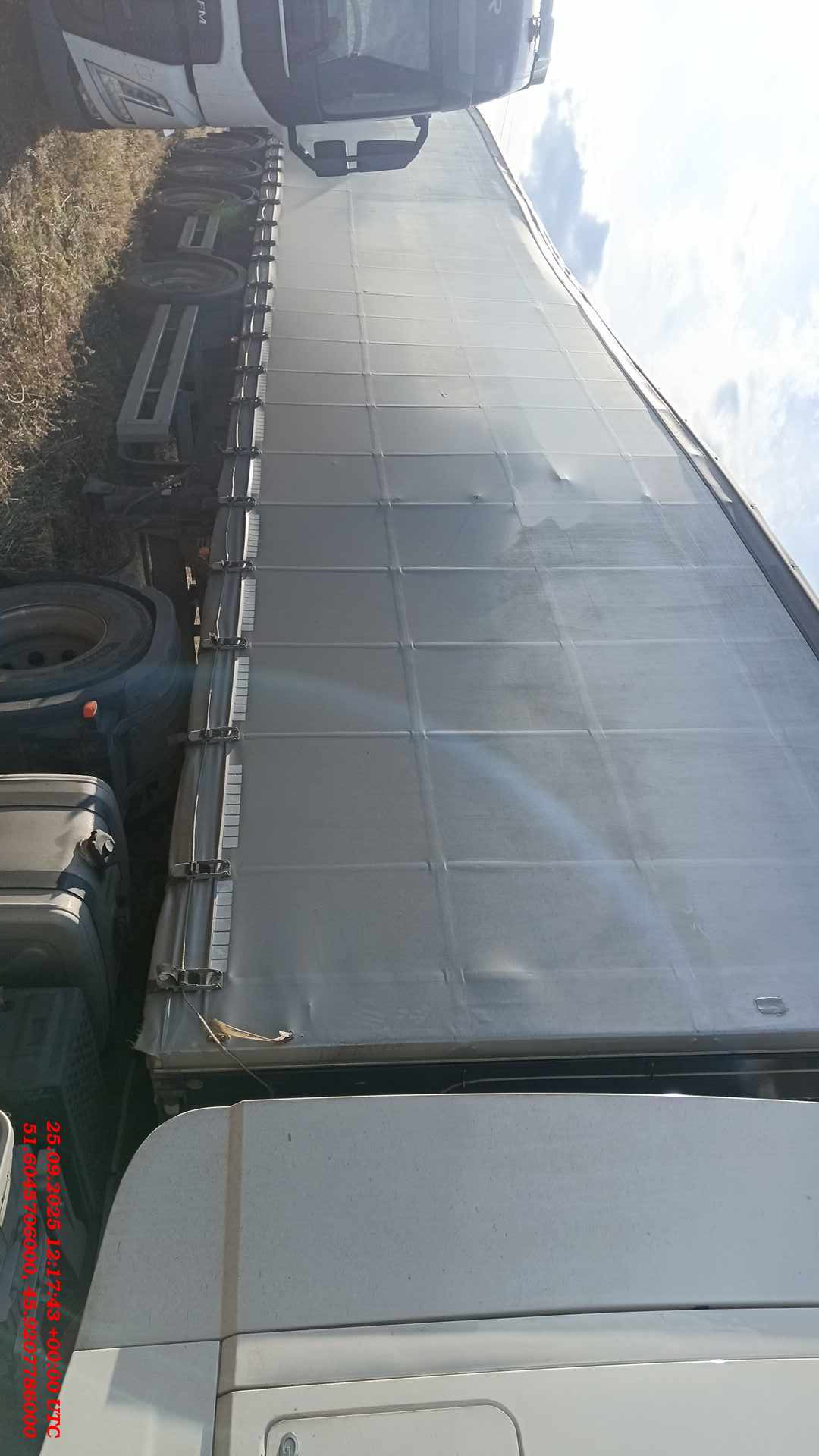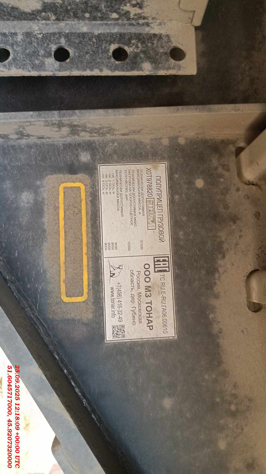 Номер лота: 000015265 Ответственный сотрудник по реализации ТС: Юдин Дмитрий ТЕХНИЧЕСКИЕ ХАРАКТЕРИСТИКИ Масса перевозимого груза, не более, кг 28 200 Масса снаряженного полуприцепа (прицепа), не более, кг 9300 Полная масса полуприцепа (прицепа), не более, кг 37 500 Нагрузка на седло (седельно-сцепное устройство), кг 10301 Высота седла (седельно-сцепного устройства), мм 1150 Длина 16 872 Ширина 2550 Высота 4000 Внутренняя высота кузова 2700 Объём грузового отсека, м3 110 РАМА • Лонжероны двутаврового сечения • Сталь 09Г2С • Повышенной прочности • Толщина полок лонжеронов рамы 10 мм • Процесс сварки происходит в аргоновой среде сварочными тракторами и роботами ШАССИ • 4-осное, с передней вынесенной осью • Оси Тонар с дисковым тормозным механизмом • Нагрузка на ось 9 тонн (технически допустимая) • Межосевое расстояние 1360мм • Подъёмные две оси (1 и 2 ось подьемные) • Сцепной шкворень 2 дюйма • Задний противоподкатный брус КУЗОВ • Передний щит металлический • 10 бортов (высота бортов - 400мм) • Борта алюминиевые • Пол – ламинированная фанера 27мм • Тент, плотность 900 гр/кв.м • Закладные под конники, но без коников ТОРМОЗНАЯ СИСТЕМА • Дисковые тормоза • Стояночная тормозная система - механический привод с пружинными энергоаккумуляторами на средней и задней осях и пневматическим ручным краном управления; • Аварийная тормозная система – механический привод с пружинами энергоаккумуляторами на средней и задней осях к тормозным механизмам колёс. • Соответствует требованиям ECE ЭЛЕКТРОСИСТЕМА • 24В • задние огни в комплекте с сигналом заднего хода, противотуманной фарой, указателями поворота и отражателями света • освещение номерного знака • габаритные огни • щиты отражателей света • 2 розетки и розетка ABS ОКРАСКА • Все стальные элементы перед окраской проходят дробеструйную обработку • Два слоя грунта • Краска: двухкомпонентная КОЛЕСА • Резина: 385/65 R22.5 • Диски: 11,75 х 22,5 • Ошиновка односкатная • Количество колёс: 8+1 запасное