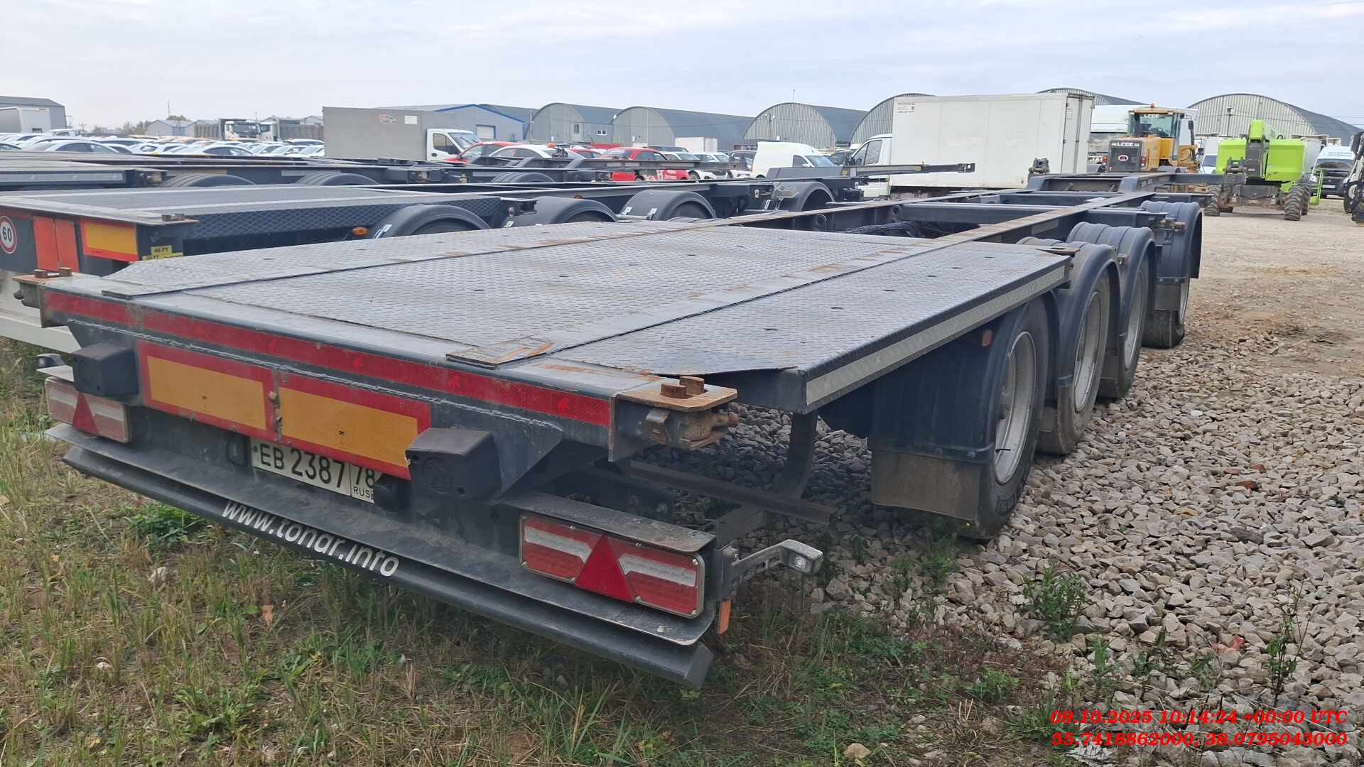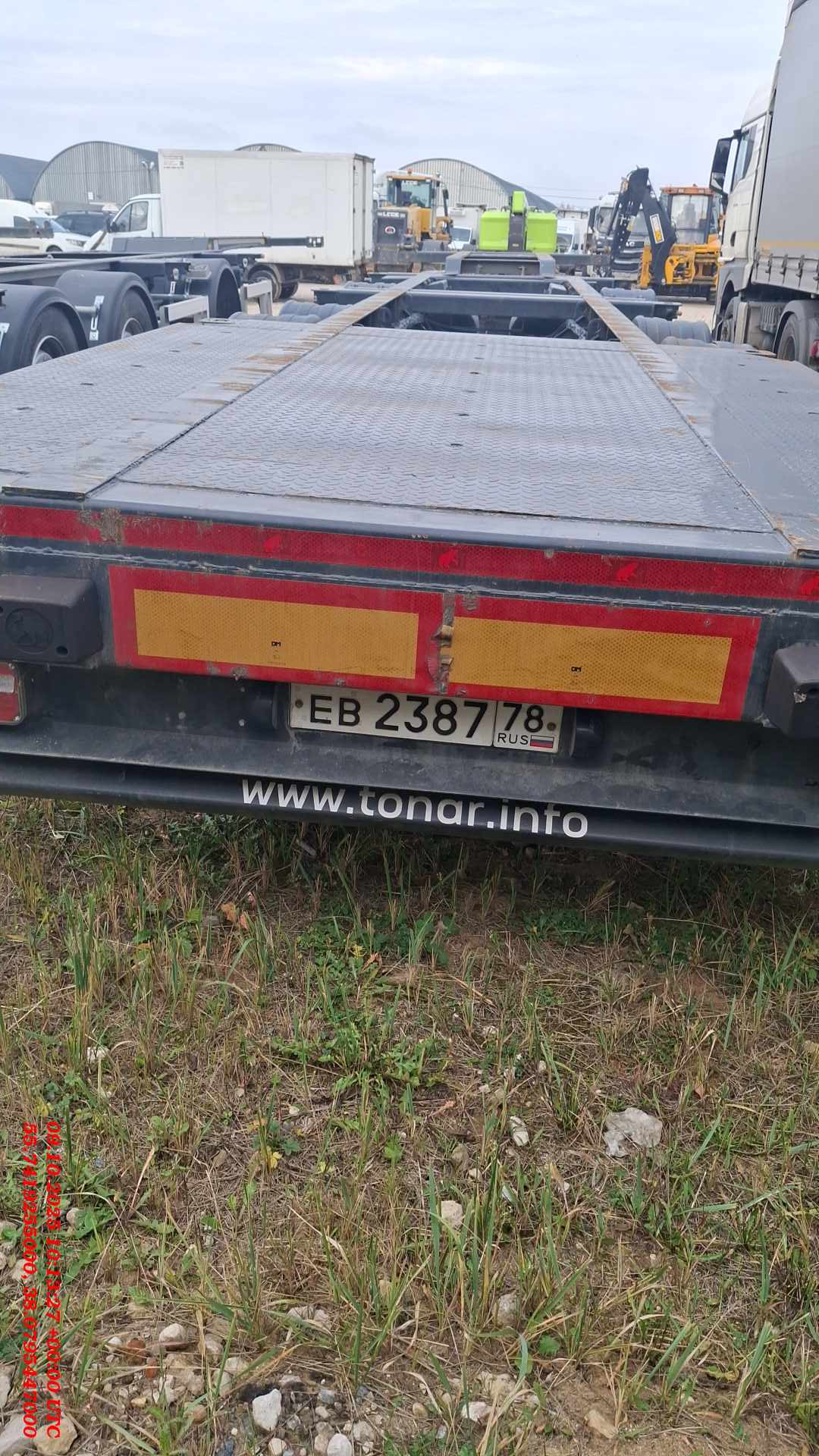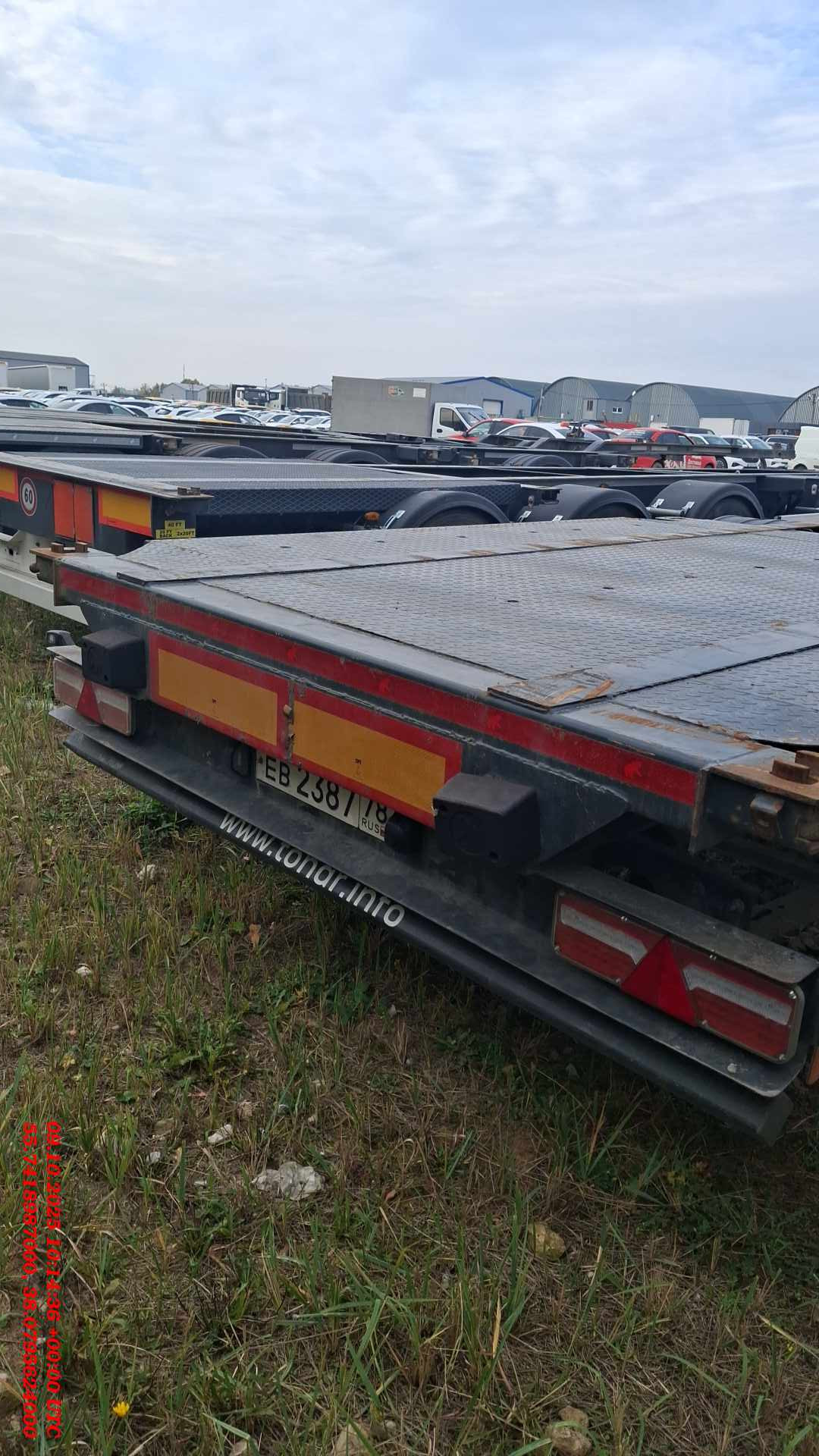 Номер лота: 000014105 Ответственный: Сергей Максимов Все колеса на месте, Шины повреждены, VIN читаем и совпадает с заявленным ТЕХ. ХАРАКТЕРИСТИКИ Масса перевозимого груза, не более, кг 38 100 Масса снаряженного полуприцепа (прицепа), не более, кг 5 900 Полная масса полуприцепа (прицепа), не более, кг 47 000 Нагрузка на седло (седельно-сцепное устройство), кг 11 000 Высота седла (седельно-сцепного устройства), мм 1 100 Длина 12 725 Ширина 2 500 Высота 1 100