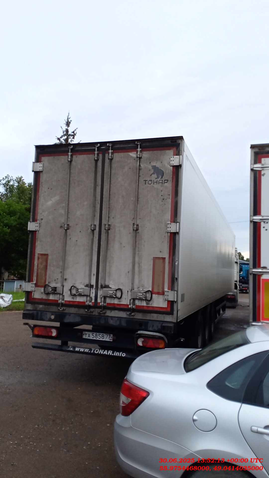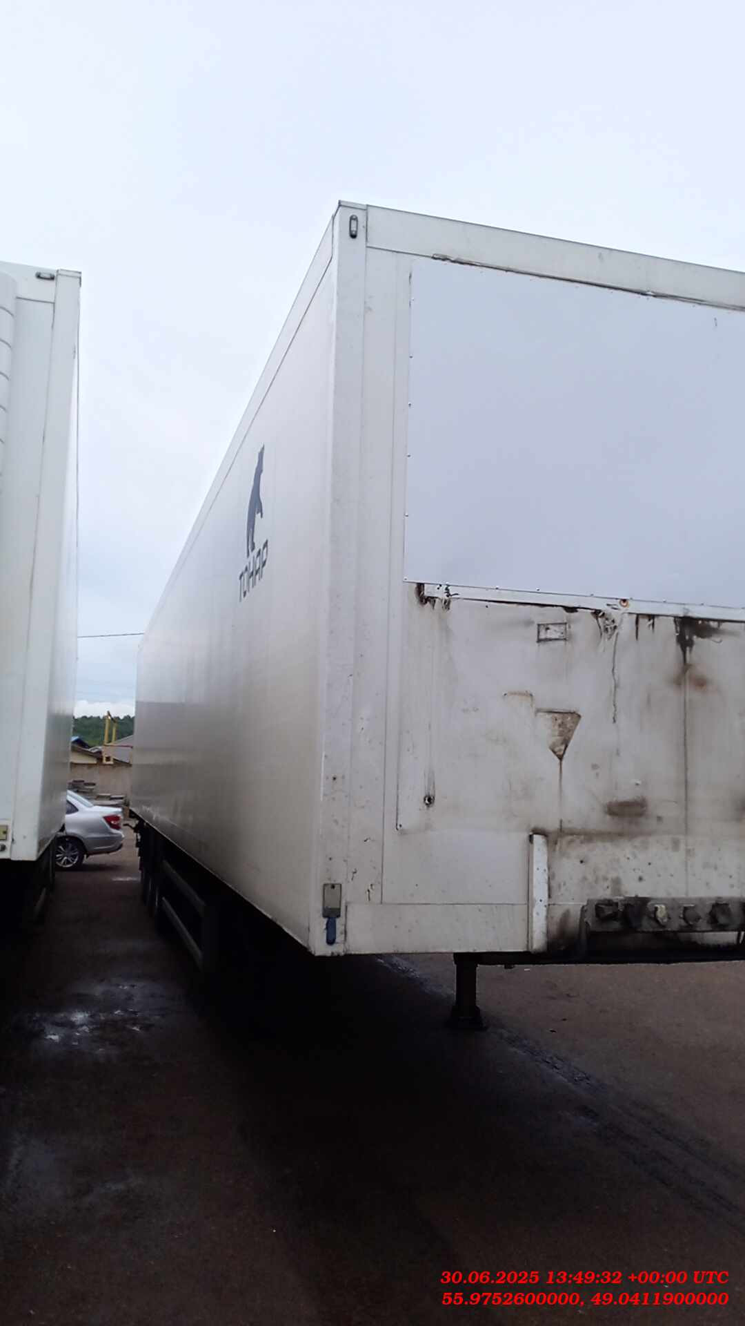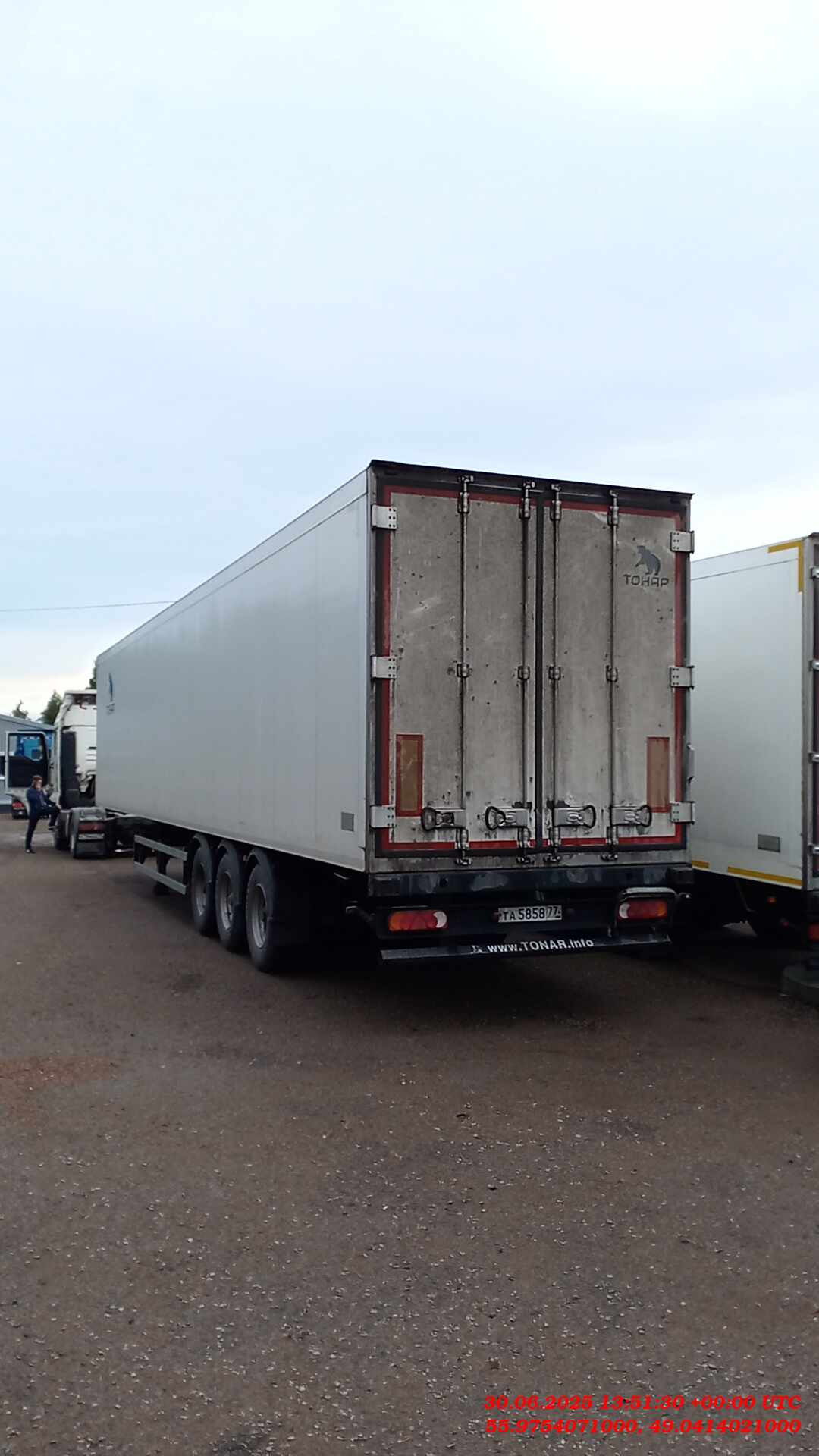 Размеры: Длина (внутренние размеры), мм - 14 610 Ширина (внутренние размеры), мм - 2 460 Высота (внутренние размеры), мм - 2 560 Высота седельно-сцепного устройства, мм 1 150 Вес: Масса снаряженного полуприцепа, не более, кг - 8 750 Разрешённая максимальная масса, кг - 38 500 Нагрузка на ССУ, кг - 11 300 Осевая нагрузка, кг - 27 000 Оси "Тонар": Шины - бескамерные 385/65R 22,5 Подвеска - зависимая, на продольных упругих рычагах с пневматическими упругими элементами и телескопическими гидравлическими амортизаторами Подъёмная ось - передняя Остальные характеристики Задняя стенка - двустворчатая дверь, каждая створка на 4 петлях, 3-х уровневый резиновый уплотнитель; рама заднего проема из нержавеющей стали Крыша - сэндвич-панели; 6 потолочных светодиодных фонарей внутреннего освещения, смещенные в бок; включатель внутреннего освещения, срабатывающий при открывания дверей Боковые стенки - сэндвич панели с усиленной жесткостью (буковые закладные) Пол - сложная сэндвич панель, с алюминиевым полом, образующим с боковой отбортовкой герметичную ванну Опорное устройство - на 24 т Количество палет, шт - 36 Комплектации Модель Тонар-97863 (R3-14) ССУ 1 150 Тип изотермический полуприцеп Кузов сложная сэндвич-панель, с алюминиевым полом, образующий с боковой отбортовкой герметичную ванну Объем 90 куб.м Кол-во осей 3 Тип ошиновки односкатный Подвеска рычажного типа Тормозная система ABS