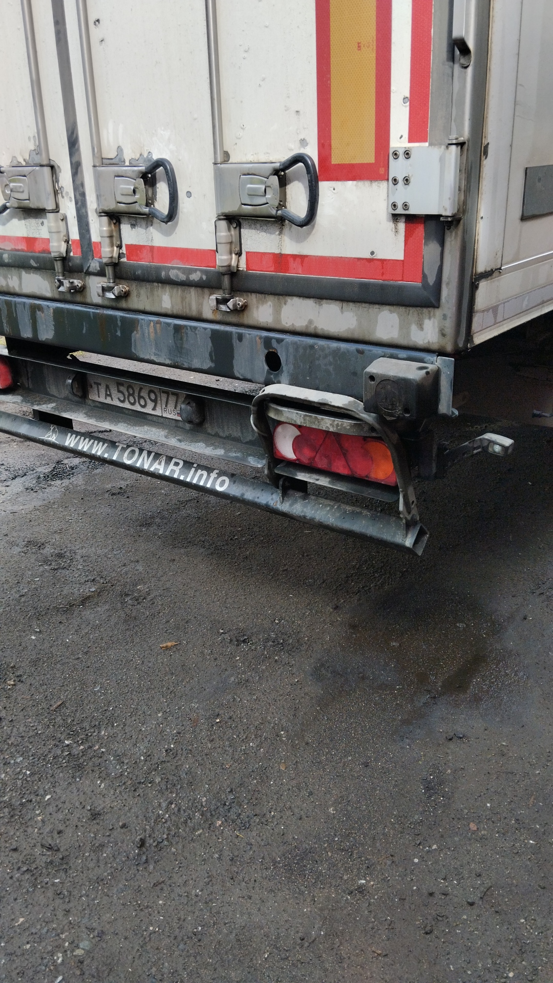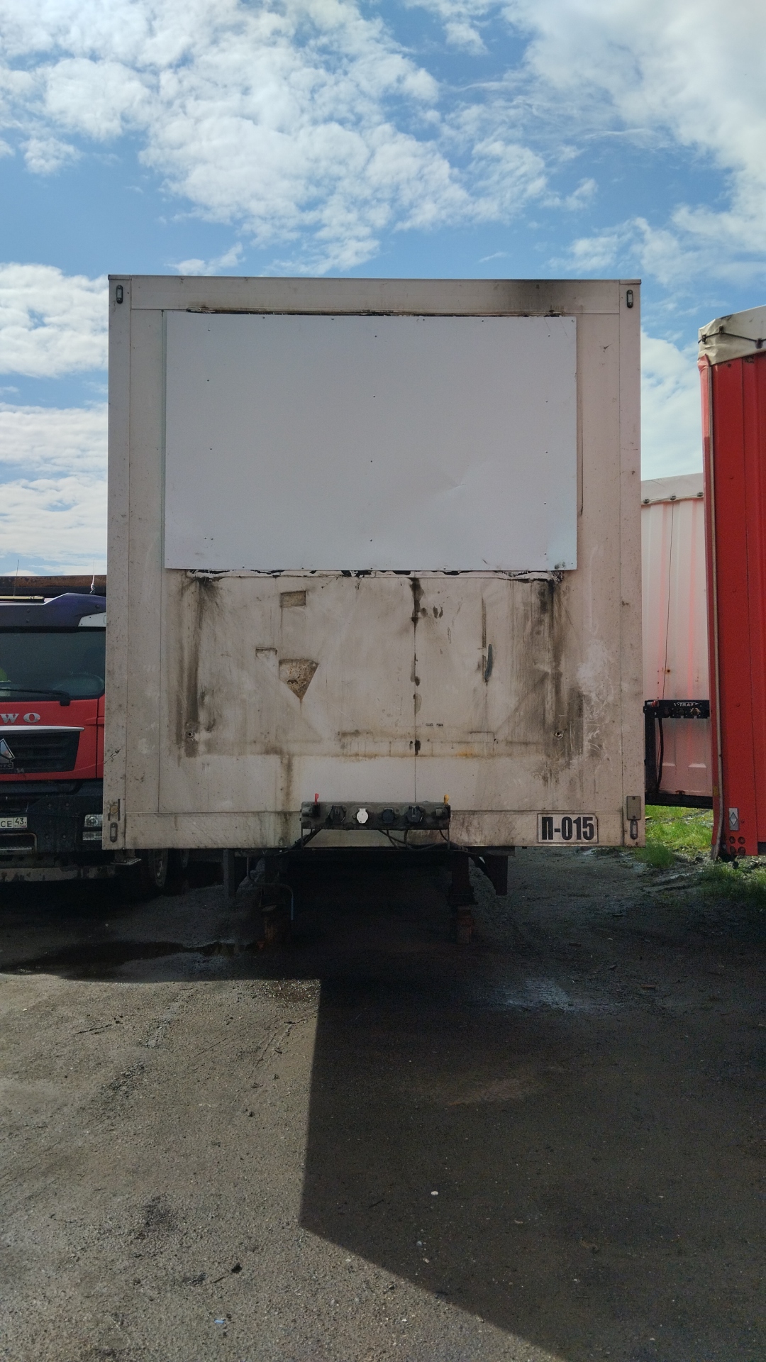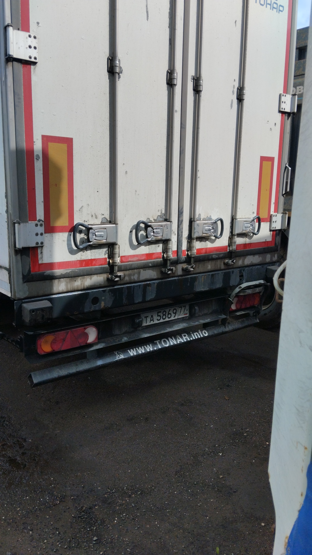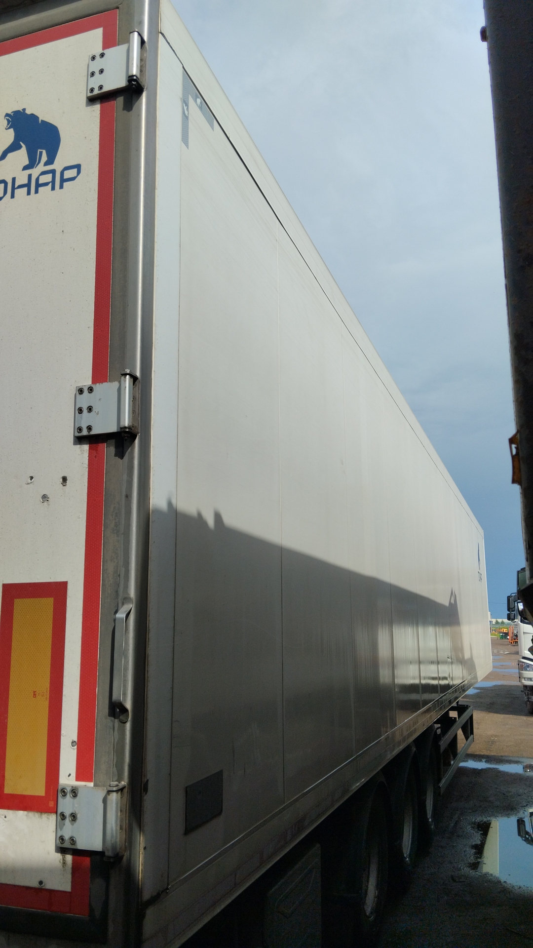 Размеры: Длина (внутренние размеры), мм - 14 610 Ширина (внутренние размеры), мм - 2 460 Высота (внутренние размеры), мм - 2 560 Высота седельно-сцепного устройства, мм 1 150 Вес: Масса снаряженного полуприцепа, не более, кг - 8 750 Разрешённая максимальная масса, кг - 38 500 Нагрузка на ССУ, кг - 11 300 Осевая нагрузка, кг - 27 000 Оси "Тонар": Подвеска - зависимая, на продольных упругих рычагах с пневматическими упругими элементами и телескопическими гидравлическими амортизаторами Подъёмная ось - передняя Остальные характеристики Задняя стенка - двустворчатая дверь, каждая створка на 4 петлях, 3-х уровневый резиновый уплотнитель; рама заднего проема из нержавеющей стали Крыша - сэндвич-панели; 6 потолочных светодиодных фонарей внутреннего освещения, смещенные в бок; включатель внутреннего освещения, срабатывающий при открывания дверей Боковые стенки - сэндвич панели с усиленной жесткостью (буковые закладные) Пол - сложная сэндвич панель, с алюминиевым полом, образующим с боковой отбортовкой герметичную ванну Опорное устройство - на 24 т Количество палет, шт - 36 Кузов сложная сэндвич-панель, с алюминиевым полом, образующий с боковой отбортовкой герметичную ванну Объем 90 куб.м Кол-во осей 3 Тип ошиновки односкатный Тормозная система ABS