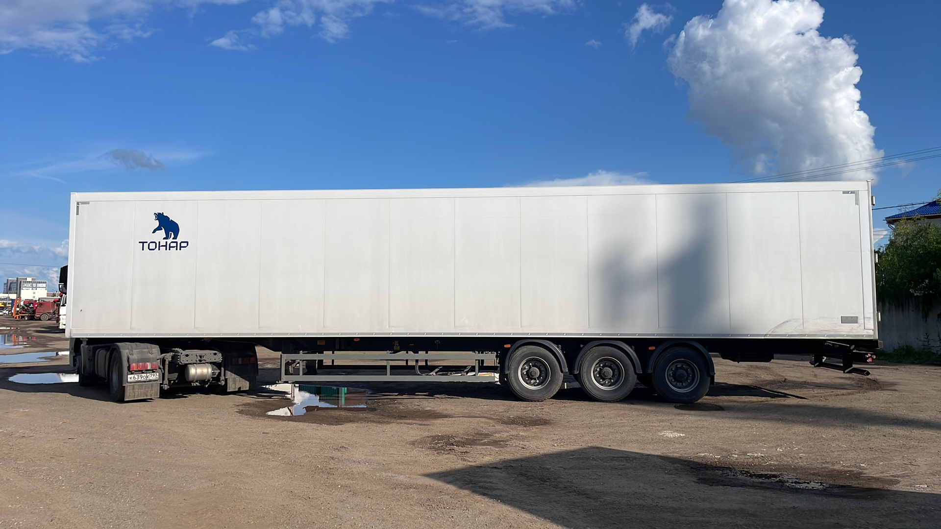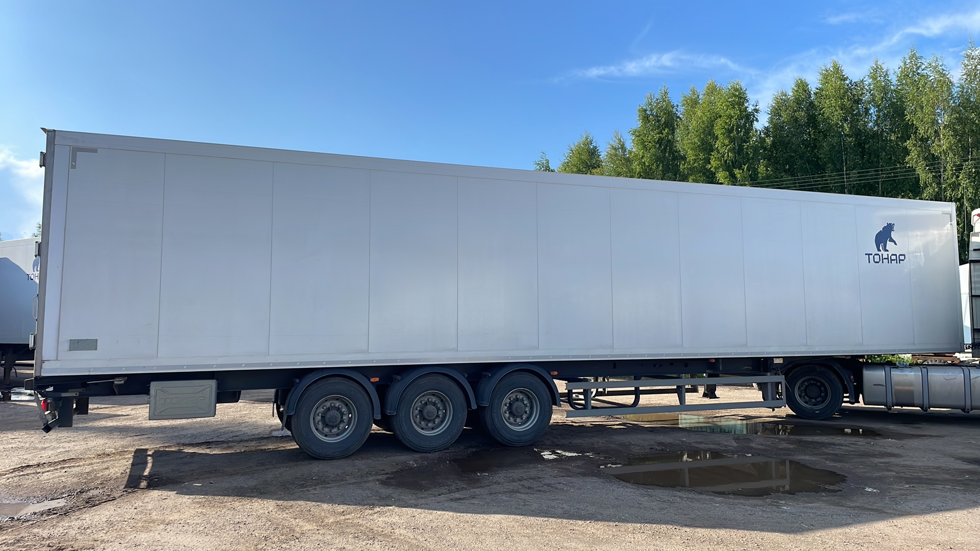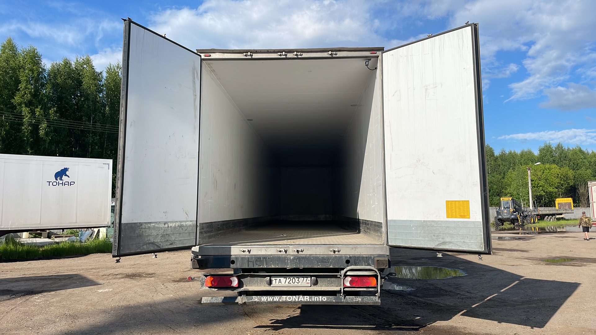 Описание комплектации от завода изготовителя Размеры: Длина (внутренние размеры), мм - 14 610 Ширина (внутренние размеры), мм - 2 460 Высота (внутренние размеры), мм - 2 560 Высота седельно-сцепного устройства, мм 1 150 Вес: Масса снаряженного полуприцепа, не более, кг - 8 750 Разрешённая максимальная масса, кг - 38 500 Нагрузка на ССУ, кг - 11 300 Осевая нагрузка, кг - 27 000 Оси "Тонар": Подвеска - зависимая, на продольных упругих рычагах с пневматическими упругими элементами и телескопическими гидравлическими амортизаторами Подъёмная ось - передняя Остальные характеристики Задняя стенка - двустворчатая дверь, каждая створка на 4 петлях, 3-х уровневый резиновый уплотнитель; рама заднего проема из нержавеющей стали Крыша - сэндвич-панели; 6 потолочных светодиодных фонарей внутреннего освещения, смещенные в бок; включатель внутреннего освещения, срабатывающий при открывания дверей Боковые стенки - сэндвич панели с усиленной жесткостью (буковые закладные) Пол - сложная сэндвич панель, с алюминиевым полом, образующим с боковой отбортовкой герметичную ванну Опорное устройство - на 24 т Количество палет, шт - 36 Комплектации Модель Тонар-97863 (R3-14) ССУ 1 150 Тип изотермический полуприцеп Кузов сложная сэндвич-панель, с алюминиевым полом, образующий с боковой отбортовкой герметичную ванну Объем 90 куб.м Кол-во осей 3 Тип ошиновки односкатный Подвеска рычажного типа Тормозная система ABS