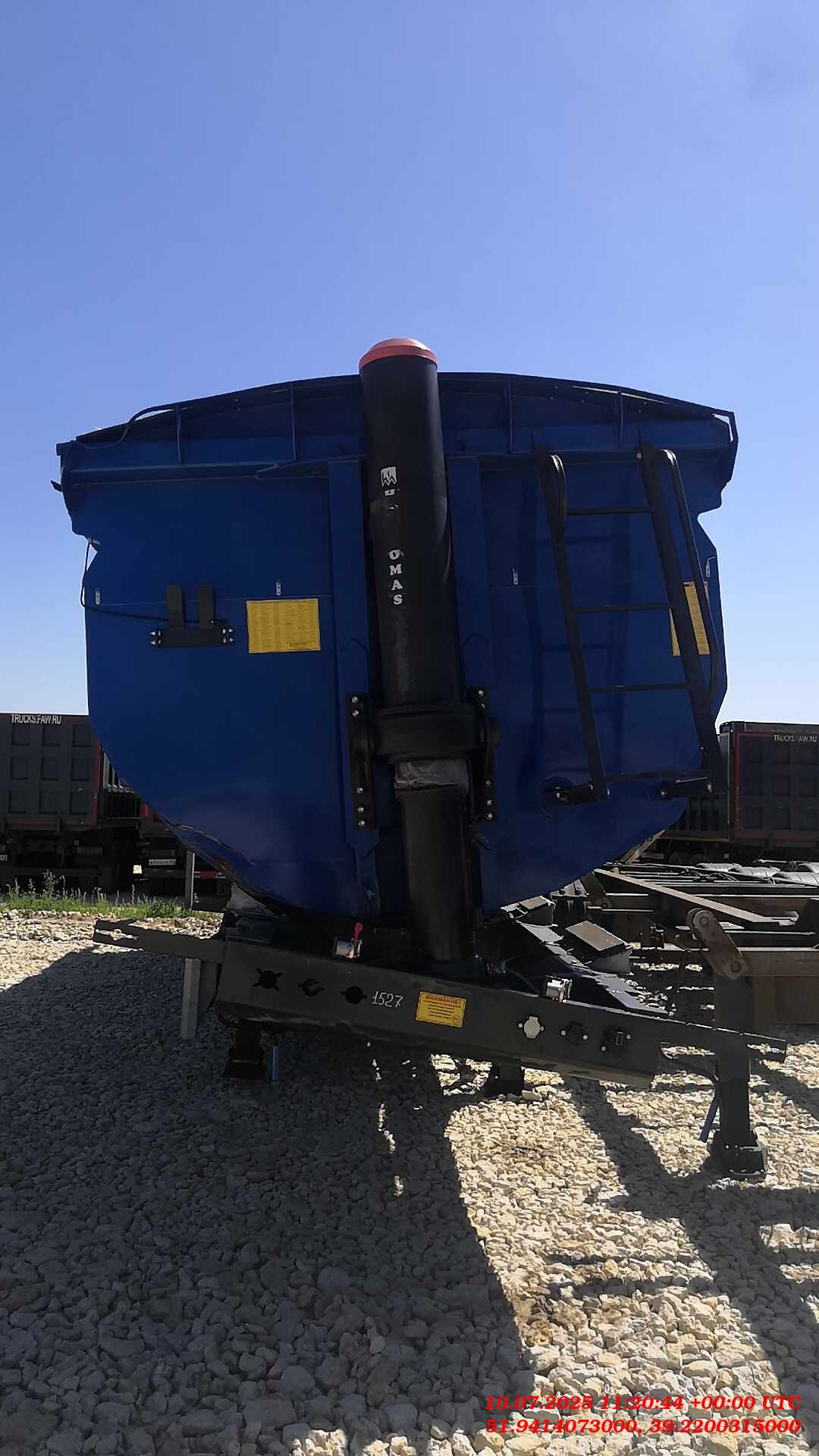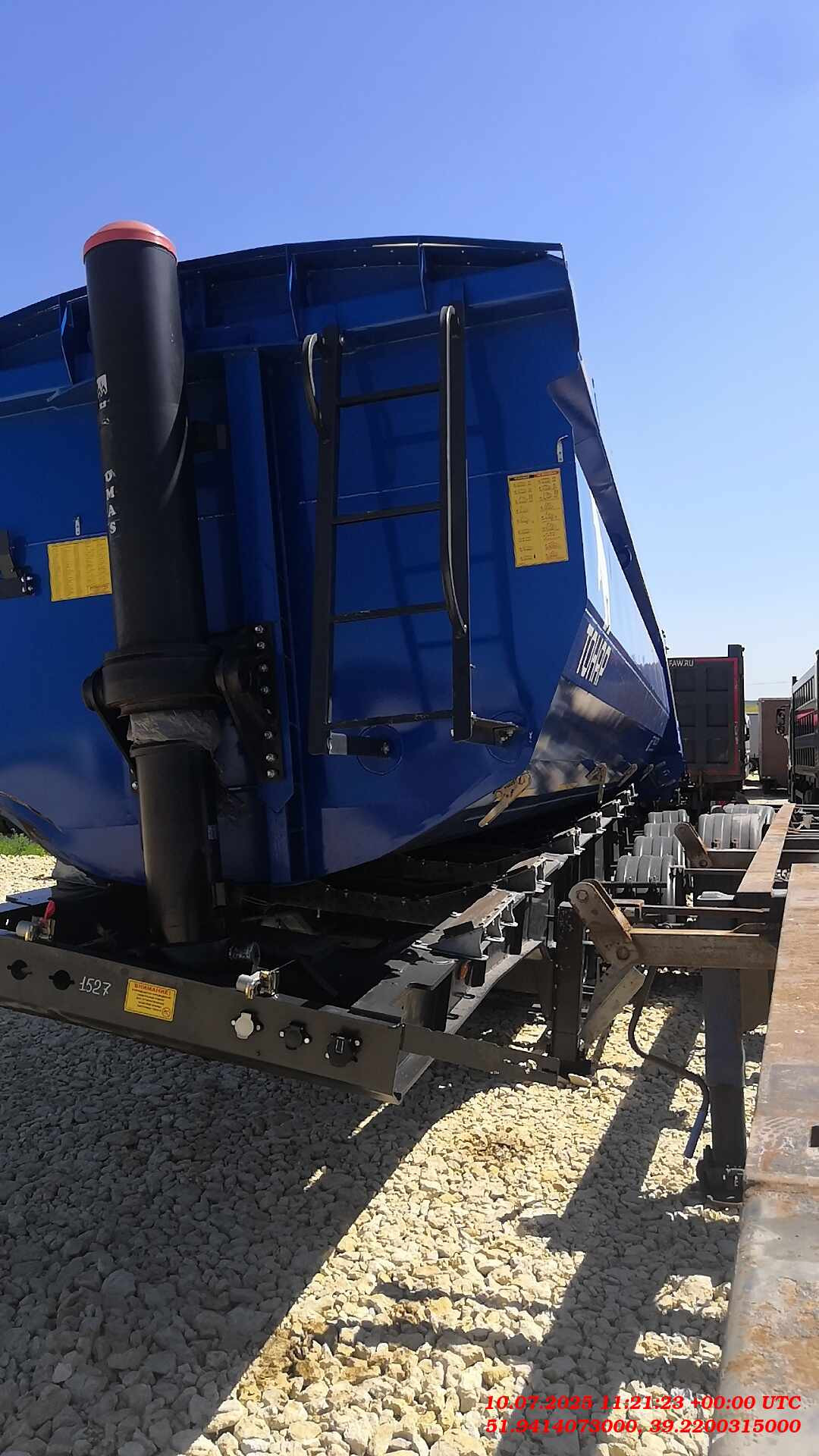 Ответственный Стешинский Денис Описание Технические характеристики: Масса перевозимого груза, не более, кг 37950 Масса транспортного средства в снаряженном состоянии,, кг 11550 Технически допустимая максимальная масса транспортного средства, кг 49500 Нагрузка на седло (седельно-сцепное устройство), кг 13500 Высота седла (седельно-сцепного устройства), мм (1200) Длина 11080 Ширина 2550 Высота 3370 Объем грузового отсека, м3 38 Рама Лонжероны двутаврового сечения Повышенной прочности Процесс сварки происходит в аргоновой среде сварочными тракторами и роботами Шасси 4-осное Оси Тонар-9042 Нагрузка на ось 9 тонн (технически допустимая) Межосевое расстояние 1360мм Пневматическая подвеска Подъёмные: первая и вторая ось (в базовой комплектации) Сцепной шкворень 2 дюйма Задний противоподкатный брус: стальной, откидной Кузов Кузов изготовлен из стали, конструкционная низколегированная сталь для сварных конструкций. Толщины: стенки 5 мм днище 7 мм Лестничная площадка на передней стене Тент, сворачивающийся в рулон на бок Задний борт закреплён в верхней части, и закрывается автоматическими замками снизу Смотровая площадка в передней части полуприцепа Процесс сварки происходит в аргоновой среде Кузов оснащён стабилизаторами, предотвращающими поперечное смещение Тормозная система Барабанные тормоза Рабочая тормозная система - С двухпроводным пневматическим приводом c электронным управлением; Стояночная тормозная система - механический привод с пружинными энергоаккумуляторами на средней и задней осях и пневматическим ручным краном управления; Аварийная тормозная система - механический привод с пружинными энергоаккумуляторами на средней и задней осях к тормозным механизмам колёс. Гидравлическая система Гидроцилиндр Электросистема 24В задние огни в комплекте с сигналом заднего хода, противотуманной фарой, указателями поворота и отражателями света освещение номерного знака габаритные огни щиты отражателей света 2 розетки и розетка ABS Пневмосистема ручным механическим управлением поднятия/опускания пневмоподвески Окраска Все стальные элементы перед окраской проходят дробеструйную обработку Два слоя грунта Краска: двухкомпонентная Цвет: любой цвет по шкале RAL. Стандартный - синий