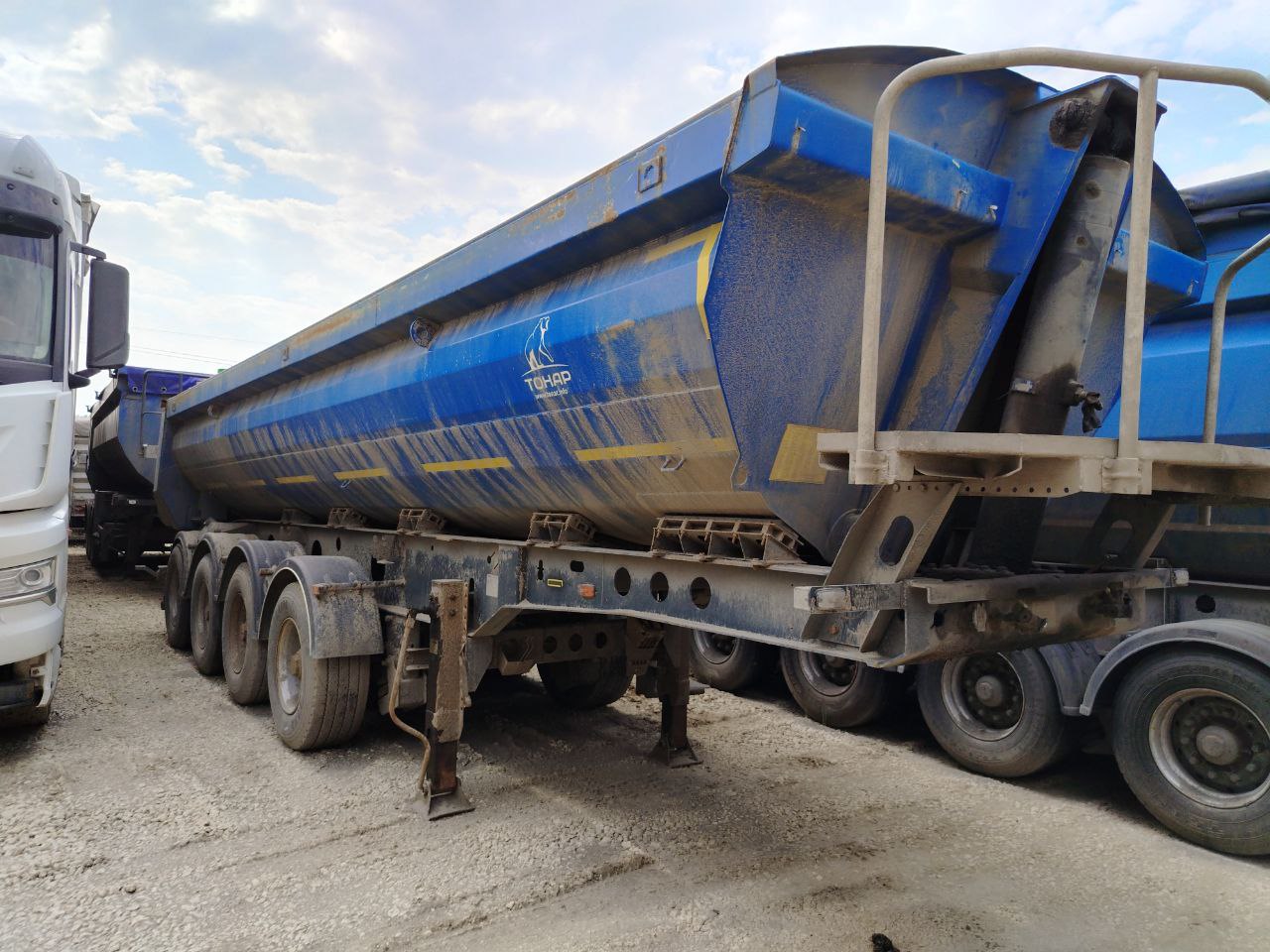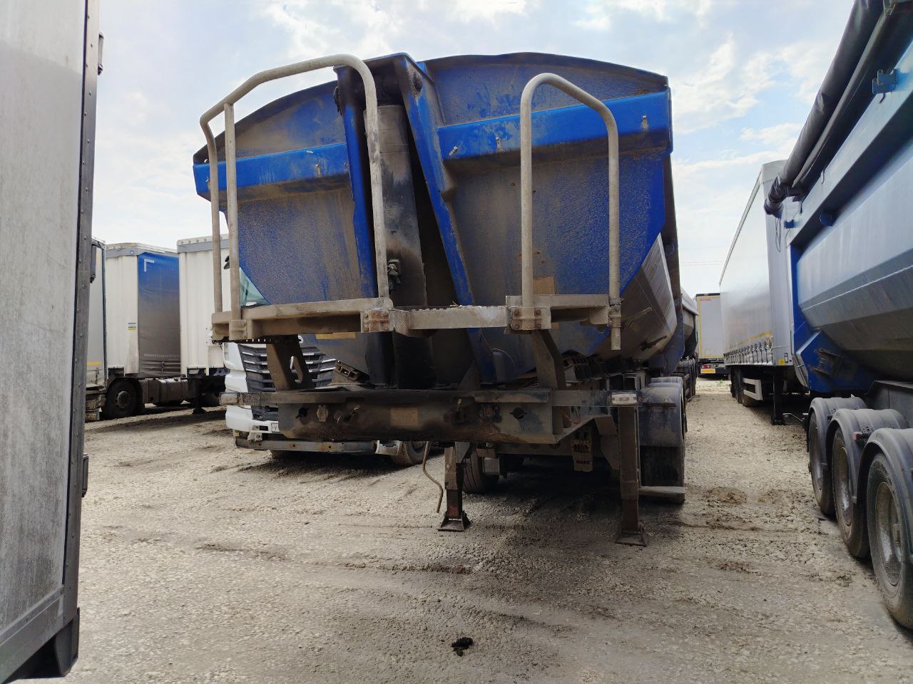 Номер лота: 000007255 Ответственный за реализацию: Голиков Даниил Сергеевич СПЕЦИФИКАЦИЯ на полуприцеп самосвальный 9595 Масса полуприцепа в снаряженном состоянии 7900 кг Максимальная масса 36450 кг Технически допустимая максимальная нагрузка опорно-сцепное устройство 9369 даН Нагрузка на оси 4 х 6725 кг Высота седельно-сцепного устройства 1150 мм Длина 10450 мм Ширина 2550 мм Высота 3400 мм Кузов Объем 26 куб.м Материал Высокопрочная сталь Толщина Днище – 5 мм, Боковые стенки – 4 мм Цвет Синий Тент Сворачивающийся в рулон на бок Задний борт Прямой, с люком Шасси Шасси 4-хосное Оси Тонар с дисковыми тормозами Межосевое расстояние 1310 мм Подвеска Пневматическая, рычажная, блок подшипники Подъемные оси 1-я 2-я Задний противоподкатный брус стальной, откидной Сцепной шкворень 2 дюйма Колёса Шины 385/65 R22.5 Диски 11,75 х 22,5 Ошиновка односкатная Количество колёс 8+1 запасное Тормозная система Пневмосистема с ручным управлением поднятия/опускания пневмоподвески Тормозные механизмы Барабаны Рабочая тормозная система С двухпроводным пневматическим приводом с электронным управлением EBS конфигурации 2S/2M действующей на тормозные механизмы.Wabco Стояночная тормозная система Механический привод с пружинными энергоаккумуляторами на средней и задней осях и пневматическим ручным краном управления Аварийная тормозная система Механический привод с пружинными энергоаккумуляторами на средней и задней осях к тормозным механизмам колёс Электросистема Напряжение 24В Подключение 2 розетки электрические 7 PIN/ 1 розетка 15 PIN 1 розетка ABS 15-контактная Освещение - задние огни в комплекте с сигналом заднего хода противотуманной фарой, указателями поворота и отражателями света - освещение номерного знака - габаритные огни Гидравлическая система Одноконтурная Окраска Все стальные элементы перед окраской проходят дробеструйную обработку Два слоя грунта Краска двухкомпонентная