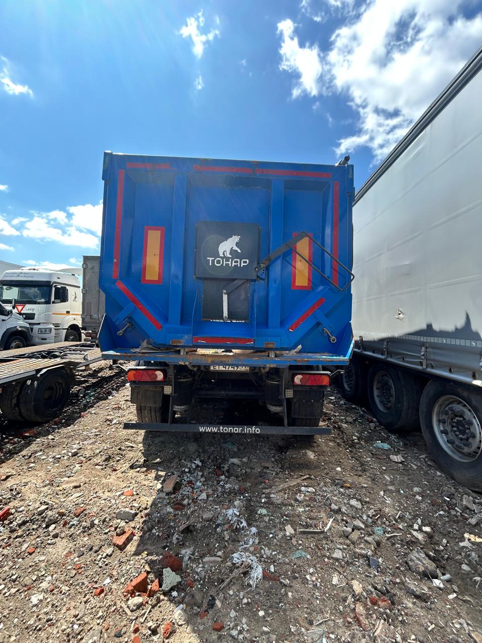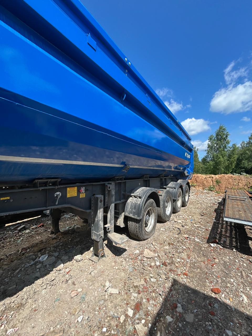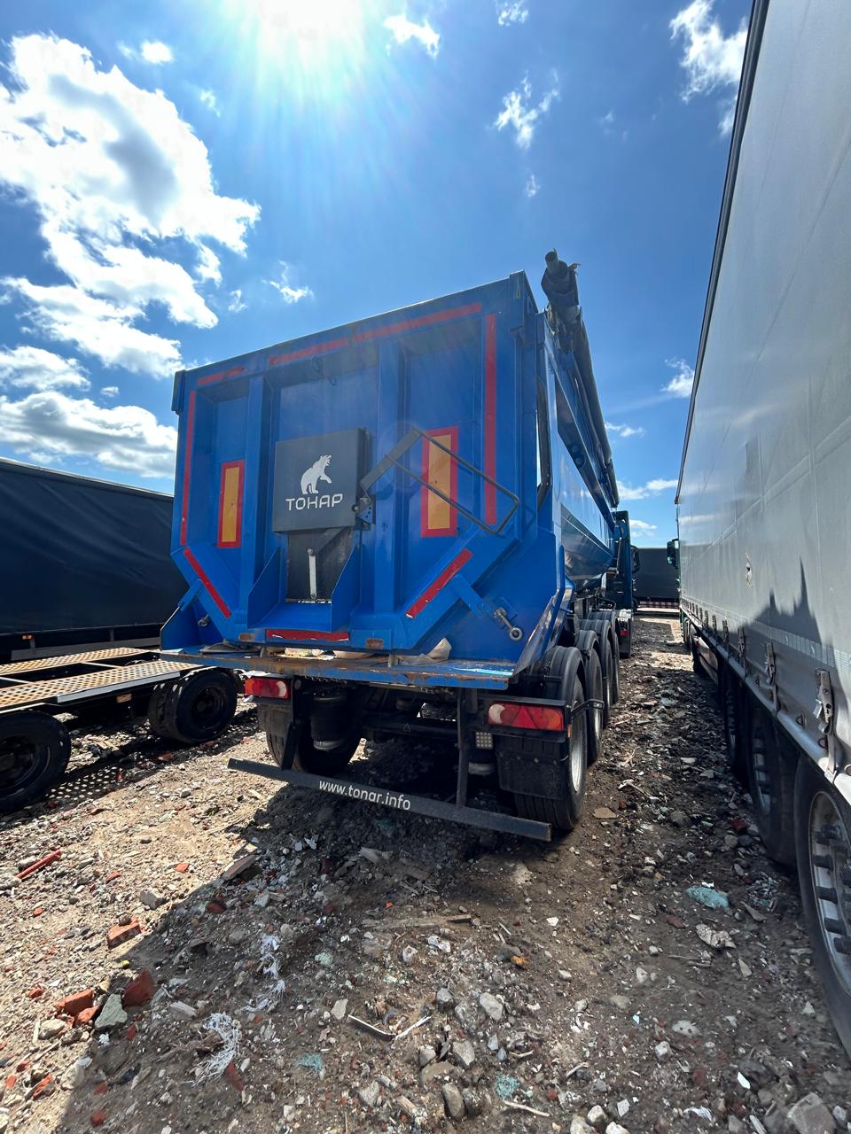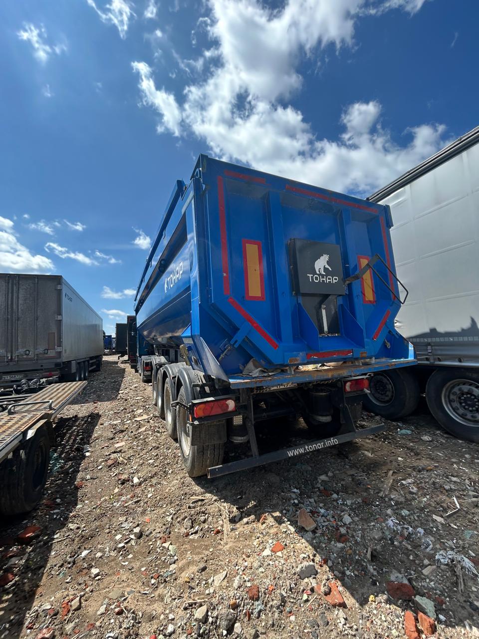 Ответственный за реализацию: Конышев Максим Олегович Номер лота 000009964 САМОСВАЛЬНЫЙ ПОЛУПРИЦЕП ТОНАР SL4-41 с задней разгрузкой ТЕХНИЧЕСКИЕ ХАРАКТЕРИСТИКИ: Модель полуприцепа Тонар 9595 Масса перевозимого груза, не более, кг 27 950 Масса снаряженного полуприцепа (прицепа), не более, кг 8 500 Полная масса полуприцепа (прицепа), не более, кг 36 450 Нагрузка на седло (седельно-сцепное устройство), кг 9 650 Высота седла (седельно-сцепного устройства), мм 1 150/1 250 Длина 10 500 Ширина 2 550 Высота 3 450 Объем загрузочного пространства, м³ 41 КОНСТРУКЦИЯ ШАССИ: 4-осное; оси Тонар; Первая, вторая ось подъемная (ручной режим); Нагрузка на ось 9 тонн (технически допустимая); Блок подшипник; Межосевое расстояние 1310мм; Подвеска пневморычажная; Сцепной шкворень 2 дюйма; Задний противоподкатный брус; РАМА Лонжероны двутаврового сечения Сталь конструкционная низколегированная ТОРМОЗНАЯ СИСТЕМА Барабанные / дисковые тормоза; Рабочая тормозная система - С двухпроводным пневматическим приводом c электронным управлением действующей на тормозные механизмы; Стояночная тормозная система - механический привод с пружинными энергоаккумуляторами на средней и задней осях и пневматическим ручным краном управления; Аварийная тормозная система – механический привод с пружинами энергоаккумуляторами на средней и задней осях к тормозным механизмам колёс. ЭЛЕКТРОСИСТЕМА 24В задние огни в комплекте с сигналом заднего хода, противотуманной фарой, указателями поворота и отражателями света освещение номерного знака габаритные огни щиты отражателей света 2 розетки и розетка ABS ПНЕВМОСИСТЕМА C механическим управлением поднятия/опускания пневмоподвески ГИДРАВЛИЧЕСКАЯ СИСТЕМА Одноконтурная гидравлическая система КОЛЕСА Шины: 385/65 R22,5 160К Диски: 11,75x22,5 Ошиновка односкатная Количество колёс: 8 + 1 запасное ОКРАСКА Все стальные элементы перед окраской проходят дробеструйную обработку Два слоя грунта Краска: двухкомпонентная Стандартный цвет синий Ral 5005 ПРОЧЕЕ ОБОРУДОВАНИЕ Рукомойник Кронштейн крепления запасного колеса Противооткатные упоры: пластиковые, 160 мм, 2 шт. КОНСТРУКЦИЯ КУЗОВА: КУЗОВ Кузов изготовлен из высокопрочной стали. Толщины: стенки 4 мм днище 5 мм Смотровая площадка в передней части полуприцепа Тент, сворачивающийся в рулон на бок