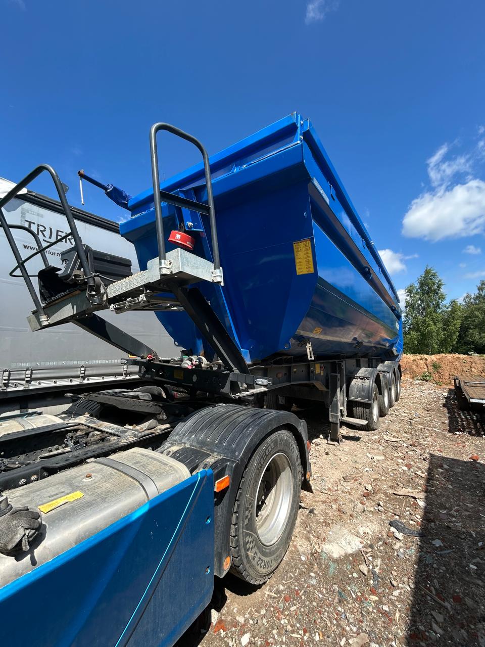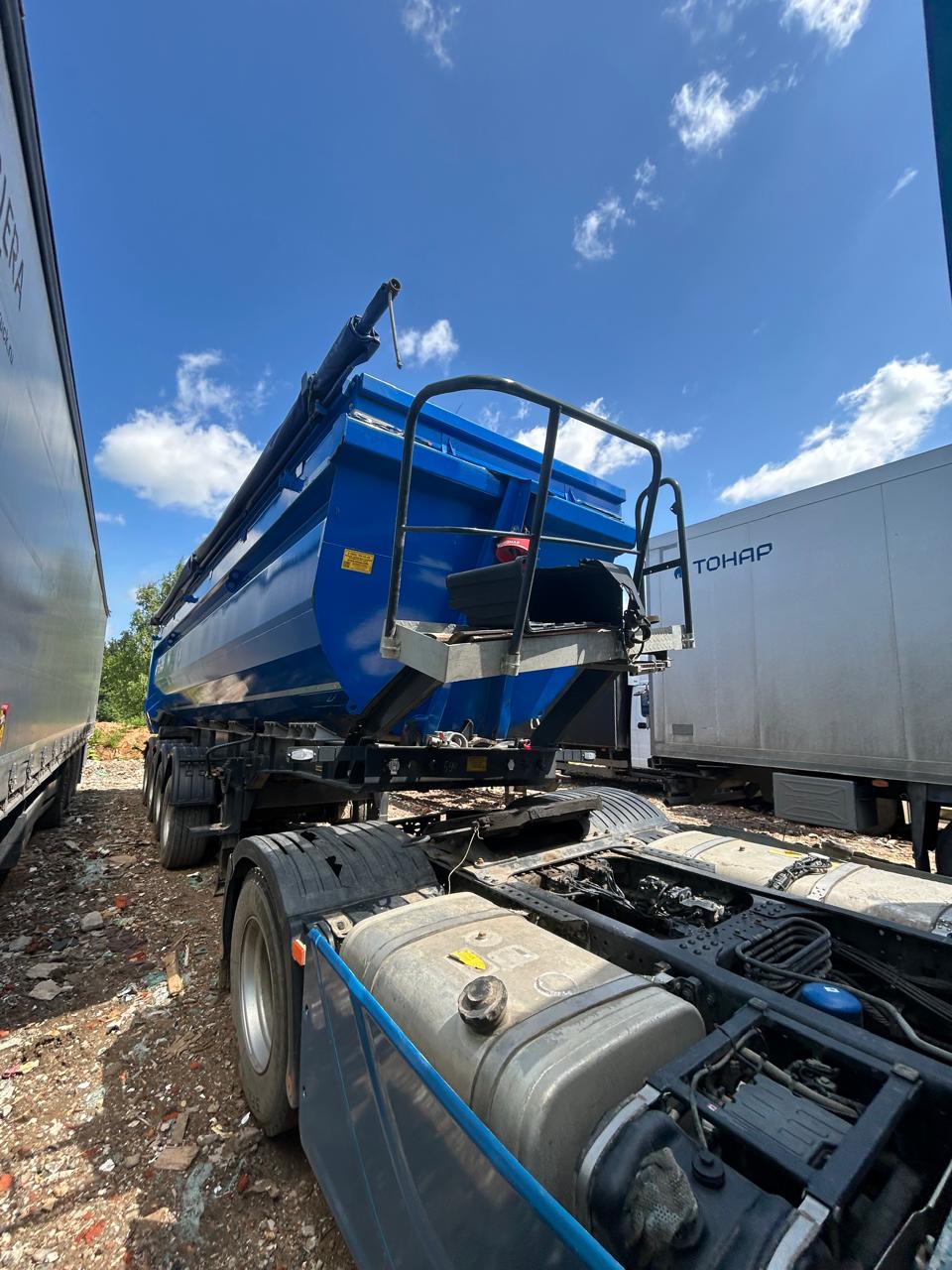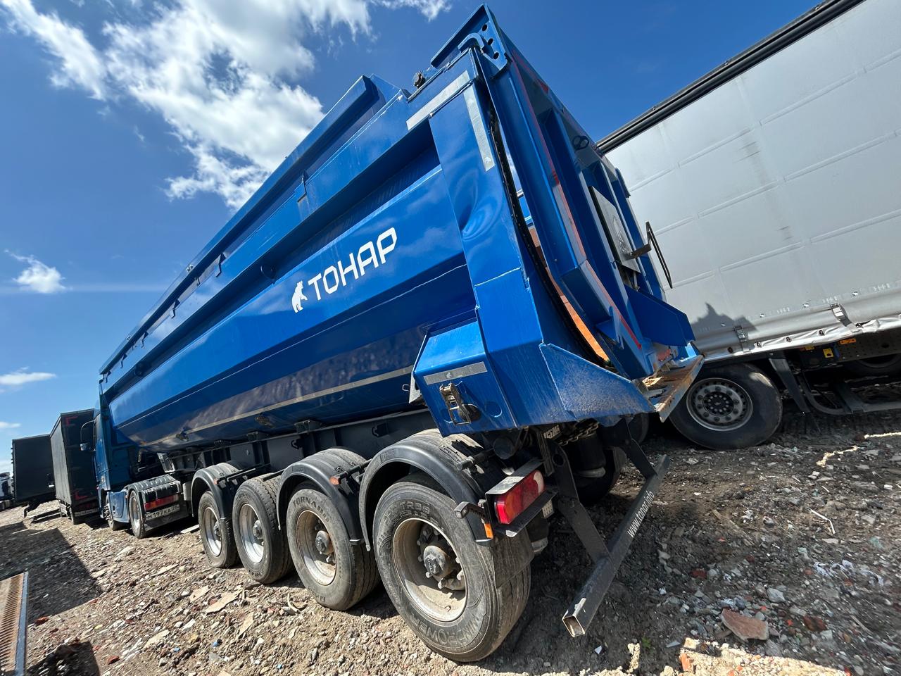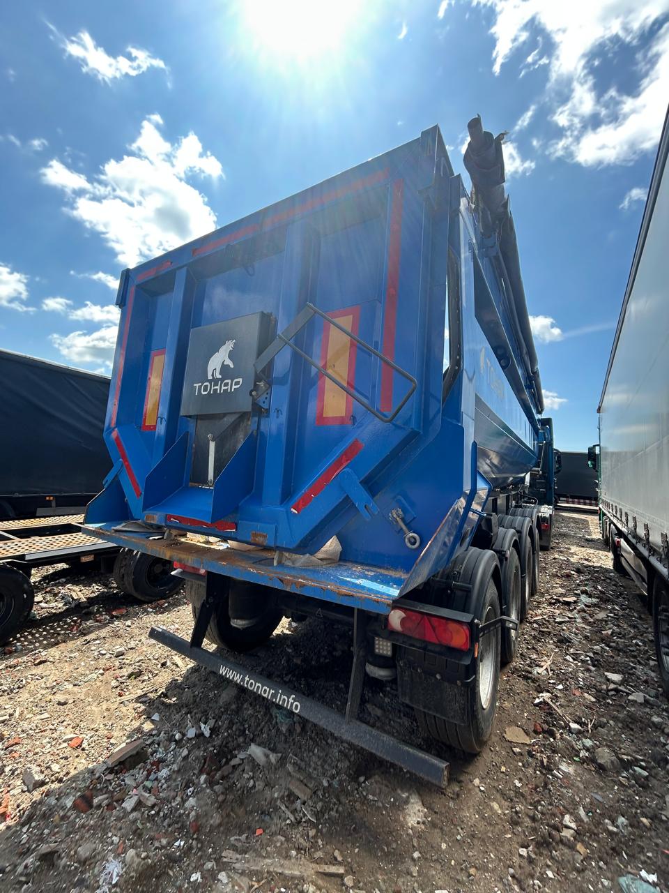 Ответственный за реализацию: Конышев Максим Олегович Номер лота 000009964 САМОСВАЛЬНЫЙ ПОЛУПРИЦЕП ТОНАР SL4-41 с задней разгрузкой ТЕХНИЧЕСКИЕ ХАРАКТЕРИСТИКИ: Модель полуприцепа Тонар 9595 Масса перевозимого груза, не более, кг 27 950 Масса снаряженного полуприцепа (прицепа), не более, кг 8 500 Полная масса полуприцепа (прицепа), не более, кг 36 450 Нагрузка на седло (седельно-сцепное устройство), кг 9 650 Высота седла (седельно-сцепного устройства), мм 1 150/1 250 Длина 10 500 Ширина 2 550 Высота 3 450 Объем загрузочного пространства, м³ 41 КОНСТРУКЦИЯ ШАССИ: 4-осное; оси Тонар; Первая, вторая ось подъемная (ручной режим); Нагрузка на ось 9 тонн (технически допустимая); Блок подшипник; Межосевое расстояние 1310мм; Подвеска пневморычажная; Сцепной шкворень 2 дюйма; Задний противоподкатный брус; РАМА Лонжероны двутаврового сечения Сталь конструкционная низколегированная ТОРМОЗНАЯ СИСТЕМА Барабанные / дисковые тормоза; Рабочая тормозная система - С двухпроводным пневматическим приводом c электронным управлением действующей на тормозные механизмы; Стояночная тормозная система - механический привод с пружинными энергоаккумуляторами на средней и задней осях и пневматическим ручным краном управления; Аварийная тормозная система – механический привод с пружинами энергоаккумуляторами на средней и задней осях к тормозным механизмам колёс. ЭЛЕКТРОСИСТЕМА 24В задние огни в комплекте с сигналом заднего хода, противотуманной фарой, указателями поворота и отражателями света освещение номерного знака габаритные огни щиты отражателей света 2 розетки и розетка ABS ПНЕВМОСИСТЕМА C механическим управлением поднятия/опускания пневмоподвески ГИДРАВЛИЧЕСКАЯ СИСТЕМА Одноконтурная гидравлическая система КОЛЕСА Шины: 385/65 R22,5 160К Диски: 11,75x22,5 Ошиновка односкатная Количество колёс: 8 + 1 запасное ОКРАСКА Все стальные элементы перед окраской проходят дробеструйную обработку Два слоя грунта Краска: двухкомпонентная Стандартный цвет синий Ral 5005 ПРОЧЕЕ ОБОРУДОВАНИЕ Рукомойник Кронштейн крепления запасного колеса Противооткатные упоры: пластиковые, 160 мм, 2 шт. КОНСТРУКЦИЯ КУЗОВА: КУЗОВ Кузов изготовлен из высокопрочной стали. Толщины: стенки 4 мм днище 5 мм Смотровая площадка в передней части полуприцепа Тент, сворачивающийся в рулон на бок
