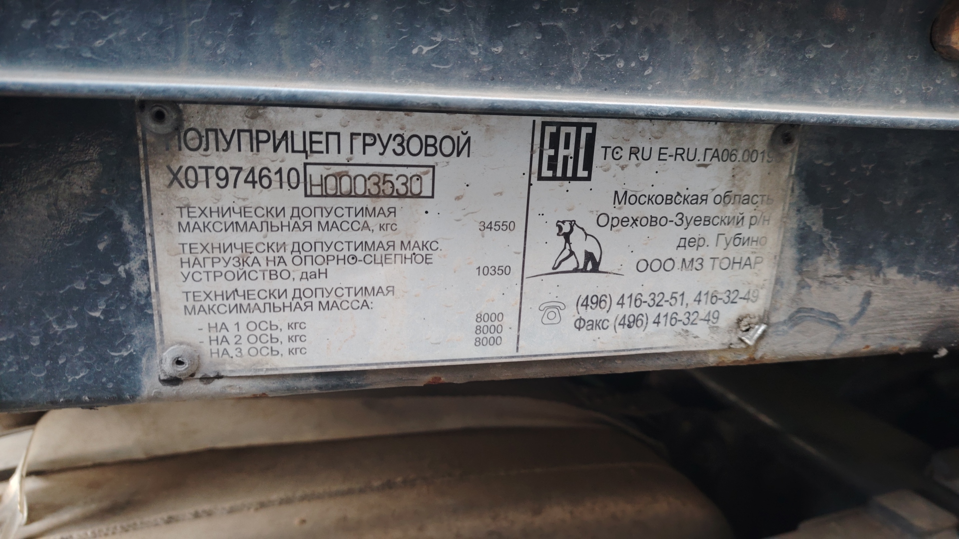 Ответственный за реализацию: Хохлачев Александр Номер лота: 000006288 Характеристики: Марка — ТОНАР Модель — 97461 Тормоза — Барабанные Тип подвески — Пневмо-рессорная Собственный вес — 7 500 кг. Грузоподъемность — 27 050 кг. Разрешённая максимальная масса — 34 550 кг. Марка осей — Тонар Высота ССУ — 1150 Тип кузова — Шторно-бортовой полуприцеп Объем кузова — 92