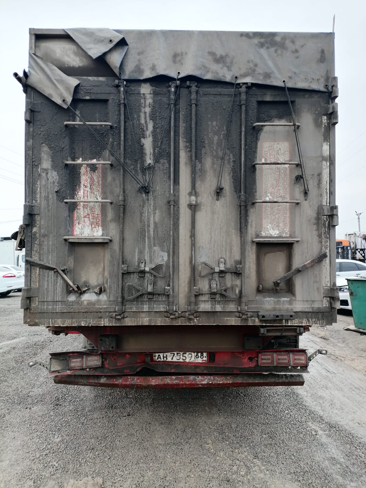 Номер лота: 000007444 Ответственный за реализацию: Голиков Даниил Сергеевич ПОЛУПРИЦЕП ТОНАР-9989 Технические характеристики: Технически допустимая максимальная масса транспортного средства, кг 47 600 Технически допустимая максимальная масса, приходящаяся на каждую из осей транспортного средства, начиная с передней оси, кг - на первую ось 9 000 - на вторую ось 9 000 - на третью ось 9 000 - на четвертую ось 9 000 Технически допустимая максимальная нагрузка на опорно-сцепное устройство, даН 11 380 Высота ССУ (седельно-сцепного устройства), мм 1 100- 1 200 Технические характеристики контейнера для сыпучих грузов (Система BDF): Объем 60 м. куб. (31 евро паллет) Внутренние размеры Длина, м 12,60 Ширина, м 2,48 Высота, м 1,90 Погрузочная высота, м 3,10 Петли для крепления груза, шт 4 Тент, шт 1 Сматывающее устройство, шт 2 Трап для обслуживания тента с двумя лестницами и поручнями 2 Откидные борта с двух сторон, на верхней навеске, открываются отдельно, оборудованы резиновым уплотнителем, шт 12 (6*2) Задний борт – распашные ворота с шиберами, оборудованы резиновым уплотнителем, шт 2 Высота открывного борта, мм 600 Вес, кг 7 700 Рама: Лонжероны двутаврового сечения Повышенной прочности Процесс сварки происходит сварочными тракторами и роботами Шасси: 4-осное Оси Тонар Максимальная масса, приходящаяся на заднюю тележку, кг –технически допустимая- 36 000 Межосевое расстояние 1 310мм (разрешенная нагрузка на ось, согласно Правил перевозки грузов автомобильным транспортом № 2200 от 21.12.20г. – 7 500кг) Пневматическая подвеска Подъёмная первая и четвертая ось (в базовой комплектации), с возможностью взвешивания на коротких 12м весах Сцепной шкворень 2 дюйма Ступичный узел – закрытый блок подшипник, межсервисный интервал 120 000км Задний противоподкатный брус: стальной, откидной Тормозная система: Тормозная система – дисковая ABS Электросистема: 24В задние огни в комплекте с сигналом заднего хода, противотуманной фарой, указателями поворота и отражателями света освещение номерного знака габаритные огни щиты отражателей света 2 розетки и розетка ABS Пневмосистема: Подвеска интегрального типа, пневмоподвеска с ручным краном подъёма опускания Окраска: Все стальные элементы перед окраской проходят дробеструйную обработку Два слоя грунта Краска: двухкомпонентная Колеса: Ошиновка односкатная Диски: 11,75 х 22,5 Количество колёс: 8+1 запасное, 385*65*22,5