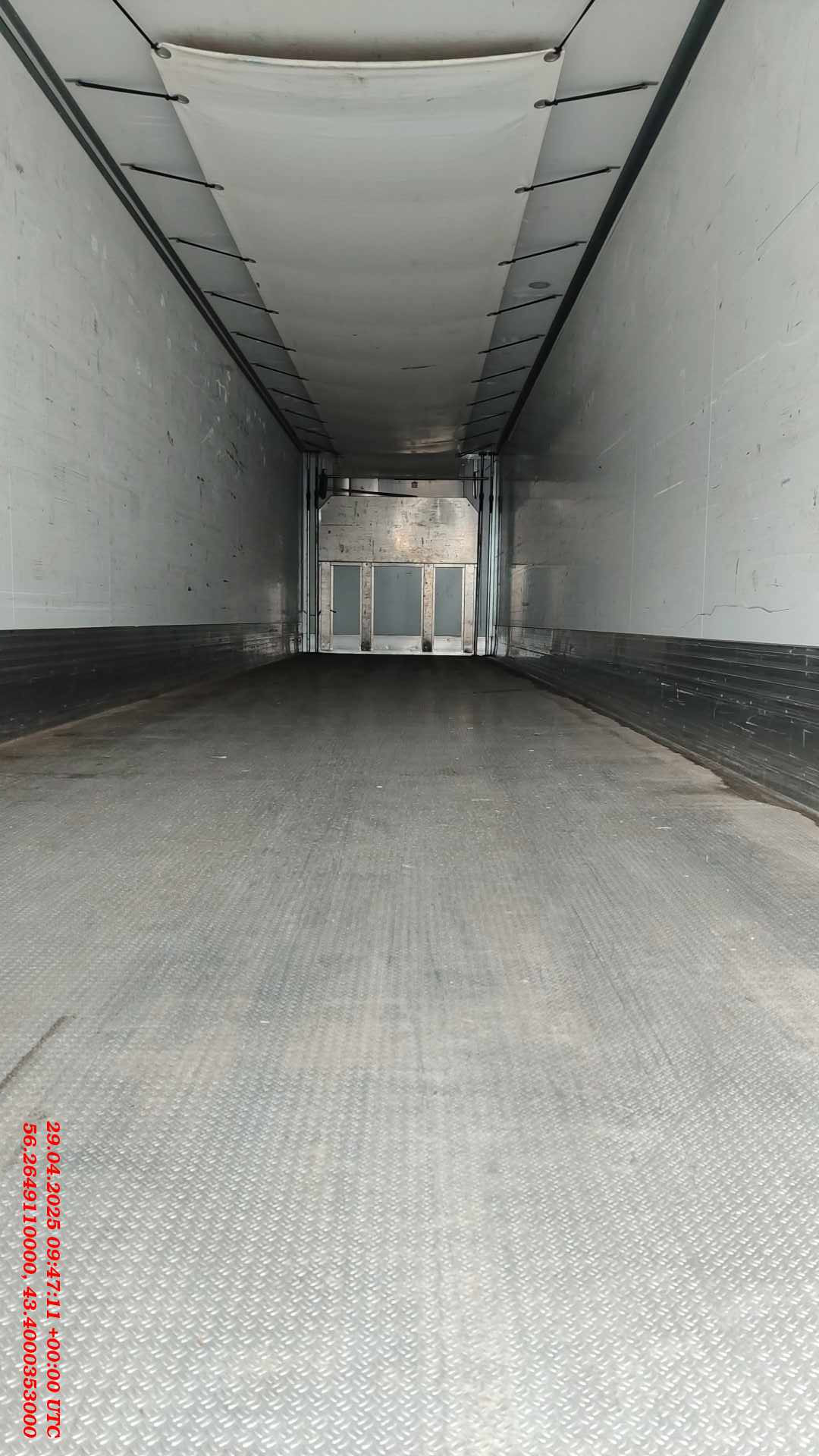 Номер лота: 000012103 Ответственный за реализацию лота - Гаменюк Владимир Андреевич Точный пробег/наработка - не установлены! ТЕХНИЧЕСКИЕ ХАРАКТЕРИСТИКИ Категория транспортного средства О4 Допустимая полная масса, кг 38 000 Нагрузка на осевой агрегат, кг 27 000 Нагрузка на ССУ, кг 11 000 Высота ССУ, мм 1 150 Геометрический объем надстройки, куб.м 83 Грузоподъемность, кг 29 100 Собственная масса, кг 8 900 Габаритная длина, мм 13 580 Габаритная ширина, мм 2 600 Габаритная высота, мм 4 000 Длина кузова внутри, мм 13 290 Ширина кузова внутри, мм 2 460 Высота кузова внутри, мм 2 550 Шины 385/65 R 22,5 ШАССИ КОНСТРУКЦИЯ РАМЫ - Сварная рама усиленной конструкции специально адаптирована для эксплуатации в сложных дорожных условиях. - Механическое двухскоростное опорное устройство. - Сцепной шкворень 2х дюймовый ОСИ И ПОДВЕСКА - 3-х осная пневматическая подвеска, осевые агрегаты- SAF ТОРМОЗНАЯ СИСТЕМА - Тормозные механизмы дискового типа. Тормозная система с ABS. - Автоматическая регулировка тормозов. - Стояночный тормоз пневматический с приводом от энергоаккумуляторов на две оси. ЭЛЕКТРООБОРУДОВАНИЕ - Двухпроводная система, рабочее напряжение 24V, согласно с требованиями правил дорожного движения и ECE, 2 соединительные розетки - Задние осветительные фонари. - Освещение номерного знака. - Габаритные огни. ШИНЫ И ДИСКИ - Ошиновка односкатная, количество колес 6 (без запасного колеса) - Шины размерность 385/65 R 22,5. Марка на выбор производителя: Кама, Кордиант, Black Lion/ аналог китайского производства - Диски из высокопрочной стали. ПОКРАСКА - Покраска производится в соответствии с требованиями ISO для тяжелых климатических условий. - Все стальные детали проходят двукратную дробеструйную обработку перед покраской. - Цвет рамы – черный. ПРОЧЕЕ ОБОРУДОВАНИЕ - Инструментальный ящик- ОТСУТСВУЕТ - Корзина на два запасных колеса, держатель для одного запасного колеса- ПРИСУТСТВУЕТ - 2 стопорных башмака с держателем - Выдвижная лестница для доступа на грузовую площадку. - Пластмассовые крылья – 4 шт., задние с брызговиками – 2 шт. - Отличительные таблички – 2 шт. - Задний защитный брус в соответствии с Правилами ЕЭК ООН № 58.01. - Маркировка транспортного средства в соответствии с 48 ECE. СЕРТИФИКАЦИЯ - Полуприцепы сертифицированы в соответствии с последними правилами Росстандарта РФ. КУЗОВ КОНСТРУКЦИЯ НАДСТРОЙКИ - Жёсткие тепло – влагоизолирующие усиленные панели из полиуретановой пены. - Облицовочный слой внутри и снаружи – оцинкованная сталь толщиной 0,8 мм с синтетическим покрытием. - Обвязка: снаружи уголок из алюминиевого профиля, внутри - оцинкованный уголок. ПЕРЕДНЯЯ СТЕНКА, КРЫША - Усиленная передняя стенка ПО 80 - Усиленные закладные ХОУ ТК 400 - Светоотражающая лента. - Боковые стенки ПО 60. - Крыша ПО 80. - Циркуляционные, защитные короба на передней стенке, защита передней стенки из алюминиевого профиля - Пологовый воздуховод ВОРОТА - Двухстворчатая задняя дверь ПО 87, 4 нержавеющие петли и две запорные штанги (импортная нерж. фурнитура) на каждой створке. - Рамка заднего портала из нержавеющей стали. - Резиновые накладки для защиты двери сзади внизу. - Рукоятки, предохраняющие задние ворота после открытия. - Импортный уплотнитель. ПОЛ - Сэндвич–конструкции: алюминиевое сварное корыто (стыкованное) отбортовка 400 мм от пола ЭЛЕКТРОИНСТАЛЯЦИЯ - 24 v согласно с нормами ECE i ADR. - 3 утопленных светильника.