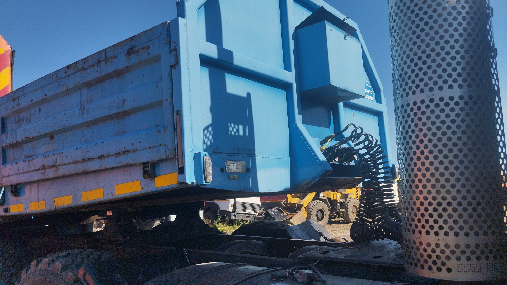 Номер лота: 000015484 Ответственный за реализацию: Волков Дмитрий Владимирович ТЕХНИЧЕСКИЕ ХАРАКТЕРИСТИКИ Параметры масс Масса перевозимого груза, кг 38 600 Снаряженная масса полуприцепа, кг 8 600 Полная масса бортового полуприцепа, кг 43 600 Распределение нагрузки от полуприцепа полной массы Нагрузка на ССУ, кг, не более 16 900 Нагрузка на дорогу через шины, кг, не более 26 700 Подвеска полуприцепа Тип Информация по подвескам трехосная, односкатная, рессорно-балансирная подвеска, оси УСТ Количество осей/колес 3 / 6+1 Шины Размер шин Информация по шинам 425/85 R21 Тормозная система Рабочая Тормозная система с пневматическим приводом, выполненная по двухпроводной схеме, с антиблокировочной системой (АБС) Стояночная Тормозные механизмы всех колес барабанного типа механическая, с пневматическим управлением, от пружинных энергоаккумуляторов к тормозным механизмам колес второй и третьей осей. Опорное устройство Модель механическое с ручным приводом Шкворень Типоразмер, дюйм 3,5 Положение шкворня, мм 500, 1 700 Радиус ометания положение шкворня 500 Радиус ометания, мм, не более - передний - задний 1 380 3 620 Радиус ометания положение шкворня 1700 Радиус ометания, мм, не более - передний - задний 2 160 2 420 Габаритные размеры платформы Длина, мм 12 300 Ширина, мм 2 470 Высота борта, мм 600 Высота коника, мм 1 200 Внутренний размер по коникам (сдвинутые), мм 2 270 Внутренний размер по коникам (раздвинутые), мм 3 330 Габаритные размеры Длина, мм 12 585 Ширина, мм 2 550 Высота, мм 2 940 Высота ССУ, мм 1 500 Погрузочная высота, мм 1 720