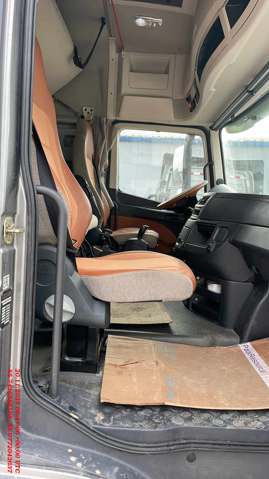 Номер лота: 000017866 Седельный тягач Valdai 45 с колесной формулой 4х2 Силовая линия Двигатель Дизельный двигатель Cummins ISG12, 470 л.с. / 346 кВт, 2193 Нм Тип системы питания Common rail Экологический класс Евро-5, SCR Коробка передач 12-ступенчатая автоматизированная адаптивная ZF Traxon Ведущий мост Одноступенчатый с блокировкой дифференциала, i=2.846 Размер шин 315/70R22,5 Шасси и электрооборудование Полная масса 18 т Тип подвески рулевой оси Рессорная 3-х листовая со стабилизатором поперечной устойчивости Технически допустимая нагрузка на рулевую ось 7 т Тип подвески ведущей оси Пневматическая на 4-х пневмобаллонах со стабилизатором поперечной устойчивости Технически допустимая нагрузка на ведущую ось 13 т Полная масса автопоезда 45 т Модель ССУ Jost 36D Высота ССУ 1150 мм Колесная база 3600 мм Топливные баки 840 (490 + 350) л Бак AdBlue 65 л Запасное колесо в транспортном положении Аккумуляторные батареи 2 х 180 Ач Розетки на полуприцеп 2 х 7 pin Галогеновые фары головного освещения и задние фонари Противотуманные фары Защитная сетка на радиаторах Тормозная система Дисковые тормозные механизмы всех колес Антиблокировочная система тормозных механизмов (ABS) Противобуксовочная система (ASR) Система динамической стабилизации (ESP) Компрессионный моторный тормоз Ручное управление рабочей тормозной системой прицепа ("парашют") Кабина Высокая спальная кабина с внутренней высотой по центру кабины 190 см Пневматическая, 4-х точечная подвеска кабины Электропривод подъема кабины с возможностью аварийного ручного поднятия Полный аэродинамический пакет (спойлер на крыше и по бокам кабины, спойлеры на шасси) Солнцезащитный козырек над лобовым стеклом Цвет кабины Белый Ящики для хранения 2 вещевых и 2 инструментальных Вождение и комфорт Водительское кресло На пневмоподвеске с обогревом и интегрированным ремнем безопасности, регулировки по 10 параметрам Пассажирское кресло Складное с откидной спинкой Тип отделки кресел Комбинированная Зеркала заднего вида С электроприводом регулировок и обогревом Бортовой компьютер с функцией диагностики автомобиля Контроль температуры Однозонный климат-контроль Количество спальных мест 2 Размер нижнего матраса 2300 х 880 мм Размер верхнего матраса 1950 x 600 мм Холодильник объемом 16л с возможностью заморозки до -10°C Люк в крыше С электроприводом и москитной сеткой Интерьерные шторки blackout внутри кабины Солнцезащитные шторки на лобовом стекле и козырек со стороны водителя Радио, USB, AUX + 4 динамика Центральный замок Зимний пакет Подогрев топливозаборника, топливной магистрали и фильтра грубой очистки Предпусковой подогрев впускного коллектора Автономный отопитель сухого типа мощностью 4кВт Утепление кабины для стран с холодным климатом