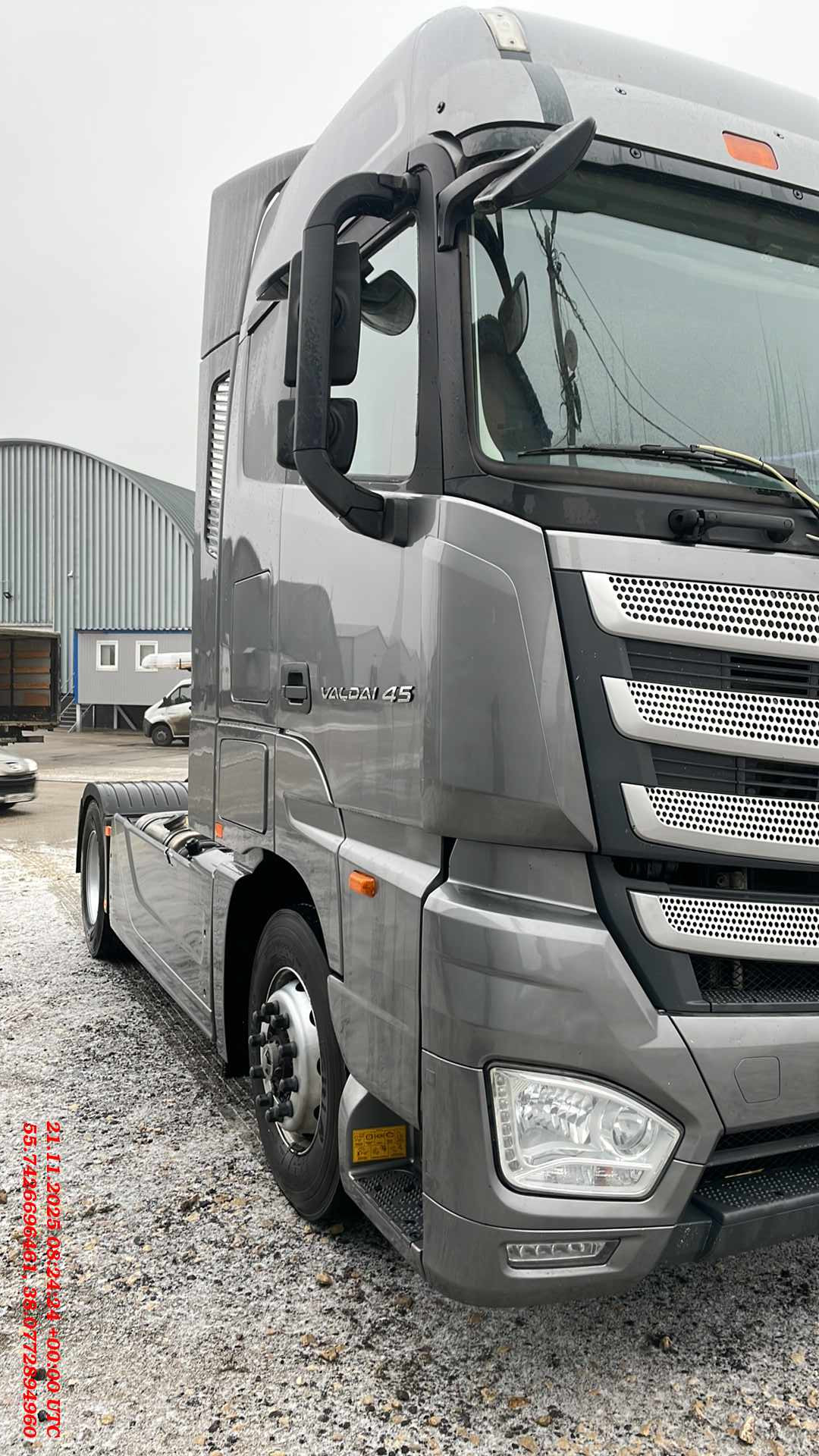 Номер лота: 000017869 Седельный тягач Valdai 45 с колесной формулой 4х2 Силовая линия Двигатель Дизельный двигатель Cummins ISG12, 470 л.с. / 346 кВт, 2193 Нм Тип системы питания Common rail Экологический класс Евро-5, SCR Коробка передач 12-ступенчатая автоматизированная адаптивная ZF Traxon Ведущий мост Одноступенчатый с блокировкой дифференциала, i=2.846 Размер шин 315/70R22,5 Шасси и электрооборудование Полная масса 18 т Тип подвески рулевой оси Рессорная 3-х листовая со стабилизатором поперечной устойчивости Технически допустимая нагрузка на рулевую ось 7 т Тип подвески ведущей оси Пневматическая на 4-х пневмобаллонах со стабилизатором поперечной устойчивости Технически допустимая нагрузка на ведущую ось 13 т Полная масса автопоезда 45 т Модель ССУ Jost 36D Высота ССУ 1150 мм Колесная база 3600 мм Топливные баки 840 (490 + 350) л Бак AdBlue 65 л Запасное колесо в транспортном положении Аккумуляторные батареи 2 х 180 Ач Розетки на полуприцеп 2 х 7 pin Галогеновые фары головного освещения и задние фонари Противотуманные фары Защитная сетка на радиаторах Тормозная система Дисковые тормозные механизмы всех колес Антиблокировочная система тормозных механизмов (ABS) Противобуксовочная система (ASR) Система динамической стабилизации (ESP) Компрессионный моторный тормоз Ручное управление рабочей тормозной системой прицепа ("парашют") Кабина Высокая спальная кабина с внутренней высотой по центру кабины 190 см Пневматическая, 4-х точечная подвеска кабины Электропривод подъема кабины с возможностью аварийного ручного поднятия Полный аэродинамический пакет (спойлер на крыше и по бокам кабины, спойлеры на шасси) Солнцезащитный козырек над лобовым стеклом Цвет кабины Белый Ящики для хранения 2 вещевых и 2 инструментальных Вождение и комфорт Водительское кресло На пневмоподвеске с обогревом и интегрированным ремнем безопасности, регулировки по 10 параметрам Пассажирское кресло Складное с откидной спинкой Тип отделки кресел Комбинированная Зеркала заднего вида С электроприводом регулировок и обогревом Бортовой компьютер с функцией диагностики автомобиля Контроль температуры Однозонный климат-контроль Количество спальных мест 2 Размер нижнего матраса 2300 х 880 мм Размер верхнего матраса 1950 x 600 мм Холодильник объемом 16л с возможностью заморозки до -10°C Люк в крыше С электроприводом и москитной сеткой Интерьерные шторки blackout внутри кабины Солнцезащитные шторки на лобовом стекле и козырек со стороны водителя Радио, USB, AUX + 4 динамика Центральный замок Зимний пакет Подогрев топливозаборника, топливной магистрали и фильтра грубой очистки Предпусковой подогрев впускного коллектора Автономный отопитель сухого типа мощностью 4кВт Утепление кабины для стран с холодным климатом