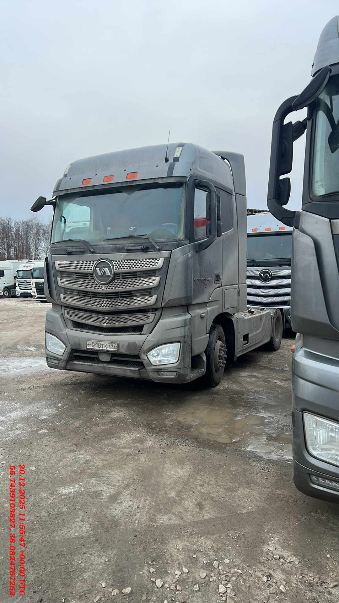 Технические характеристики: · Седельный тягач Valdai 45 с колесной формулой 4х2 Силовая линия Двигатель Дизельный двигатель Cummins ISG12, 470 л.с. / 346 кВт, 2193 Нм Тип системы питания Common rail Экологический класс Евро-5, SCR Коробка передач 12-ступенчатая автоматизированная адаптивная ZF Traxon Ведущий мост Одноступенчатый с блокировкой дифференциала, i=2.846 Размер шин 315/70R22,5 Шасси и электрооборудование Полная масса 18 т Тип подвески рулевой оси Рессорная 3-х листовая со стабилизатором поперечной устойчивости Технически допустимая нагрузка на рулевую ось 7 т Тип подвески ведущей оси Пневматическая на 4-х пневмобаллонах со стабилизатором поперечной устойчивости Технически допустимая нагрузка на ведущую ось 13 т Полная масса автопоезда 45 т Модель ССУ Jost 36D Высота ССУ 1150 мм Колесная база 3600 мм Топливные баки 840 (490 + 350) л Бак AdBlue 65 л Запасное колесо в транспортном положении Аккумуляторные батареи 2 х 180 Ач Розетки на полуприцеп 2 х 7 pin Галогеновые фары головного освещения и задние фонари Противотуманные фары Защитная сетка на радиаторах Тормозная система Дисковые тормозные механизмы всех колес Антиблокировочная система тормозных механизмов (ABS) Противобуксовочная система (ASR) Система динамической стабилизации (ESP) Компрессионный моторный тормоз Ручное управление рабочей тормозной системой прицепа ("парашют") Кабина Высокая спальная кабина с внутренней высотой по центру кабины 190 см Пневматическая, 4-х точечная подвеска кабины Электропривод подъема кабины с возможностью аварийного ручного поднятия Полный аэродинамический пакет (спойлер на крыше и по бокам кабины, спойлеры на шасси) Солнцезащитный козырек над лобовым стеклом Цвет кабины Белый Ящики для хранения 2 вещевых и 2 инструментальных Вождение и комфорт Водительское кресло На пневмоподвеске с обогревом и интегрированным ремнем безопасности, регулировки по 10 параметрам Пассажирское кресло Складное с откидной спинкой Тип отделки кресел Комбинированная Зеркала заднего вида С электроприводом регулировок и обогревом Бортовой компьютер с функцией диагностики автомобиля Контроль температуры Однозонный климат-контроль Количество спальных мест 2 Размер нижнего матраса 2300 х 880 мм Размер верхнего матраса 1950 x 600 мм Холодильник объемом 16л с возможностью заморозки до -10°C Люк в крыше С электроприводом и москитной сеткой Интерьерные шторки blackout внутри кабины Солнцезащитные шторки на лобовом стекле и козырек со стороны водителя Радио, USB, AUX + 4 динамика Центральный замок Зимний пакет Подогрев топливозаборника, топливной магистрали и фильтра грубой очистки Предпусковой подогрев впускного коллектора Автономный отопитель сухого типа мощностью 4кВт Утепление кабины для стран с холодным климатом