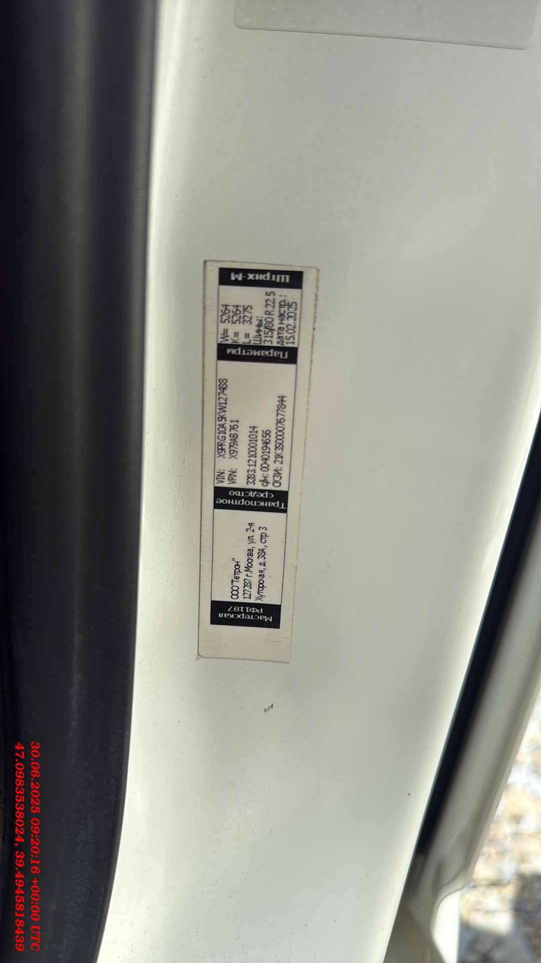 данные о машине