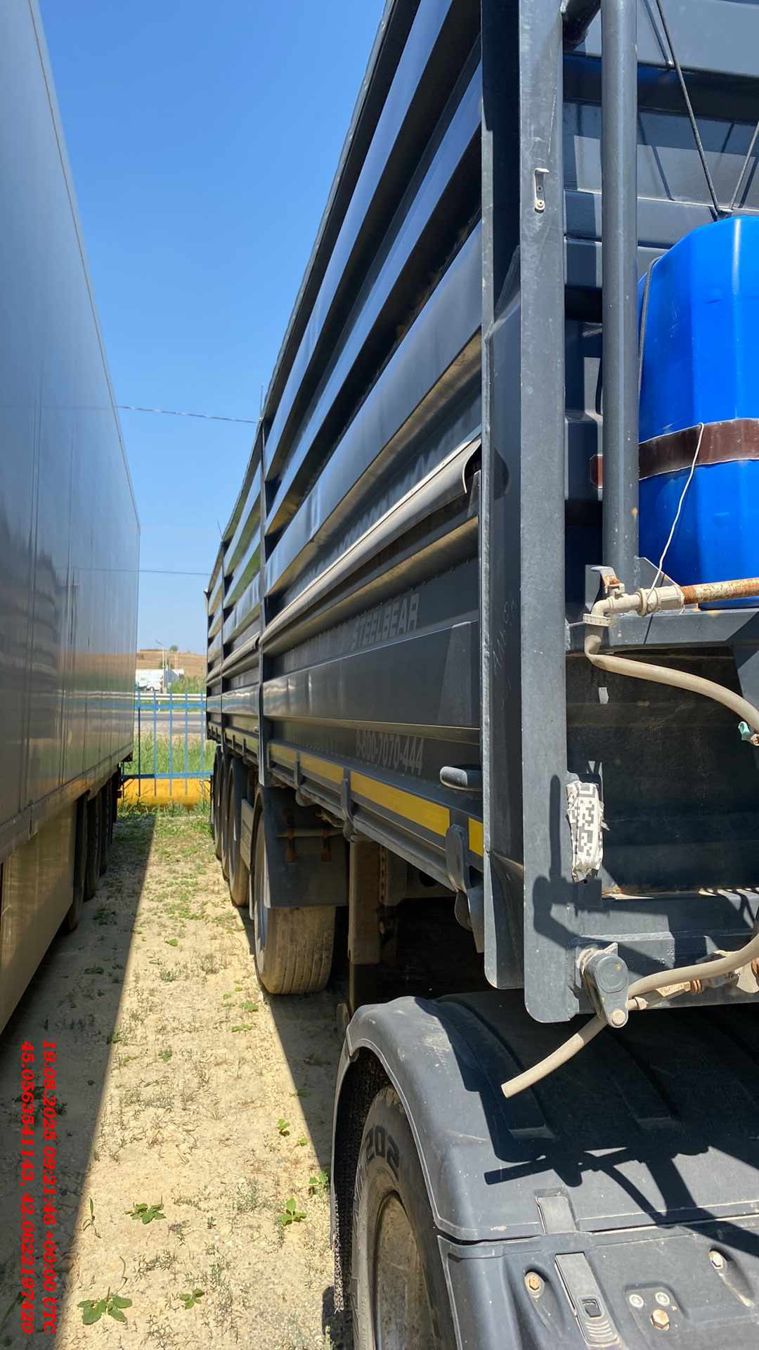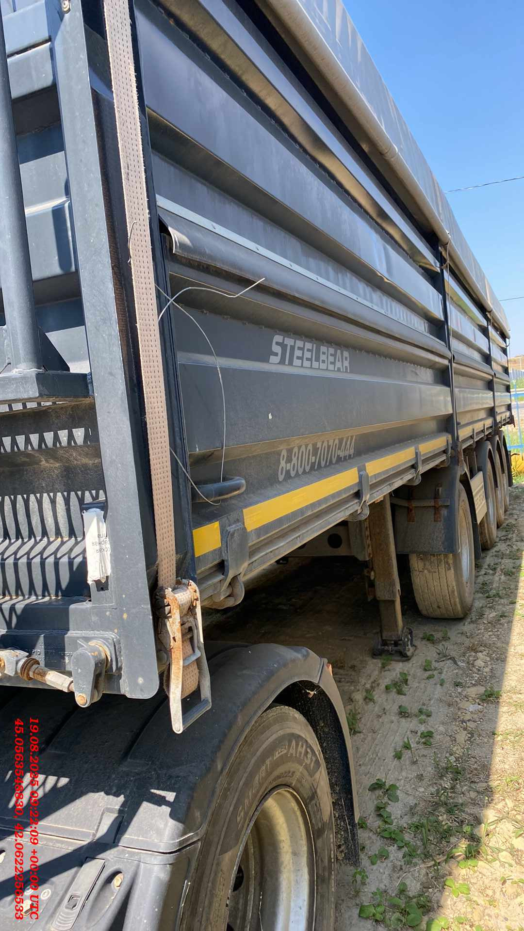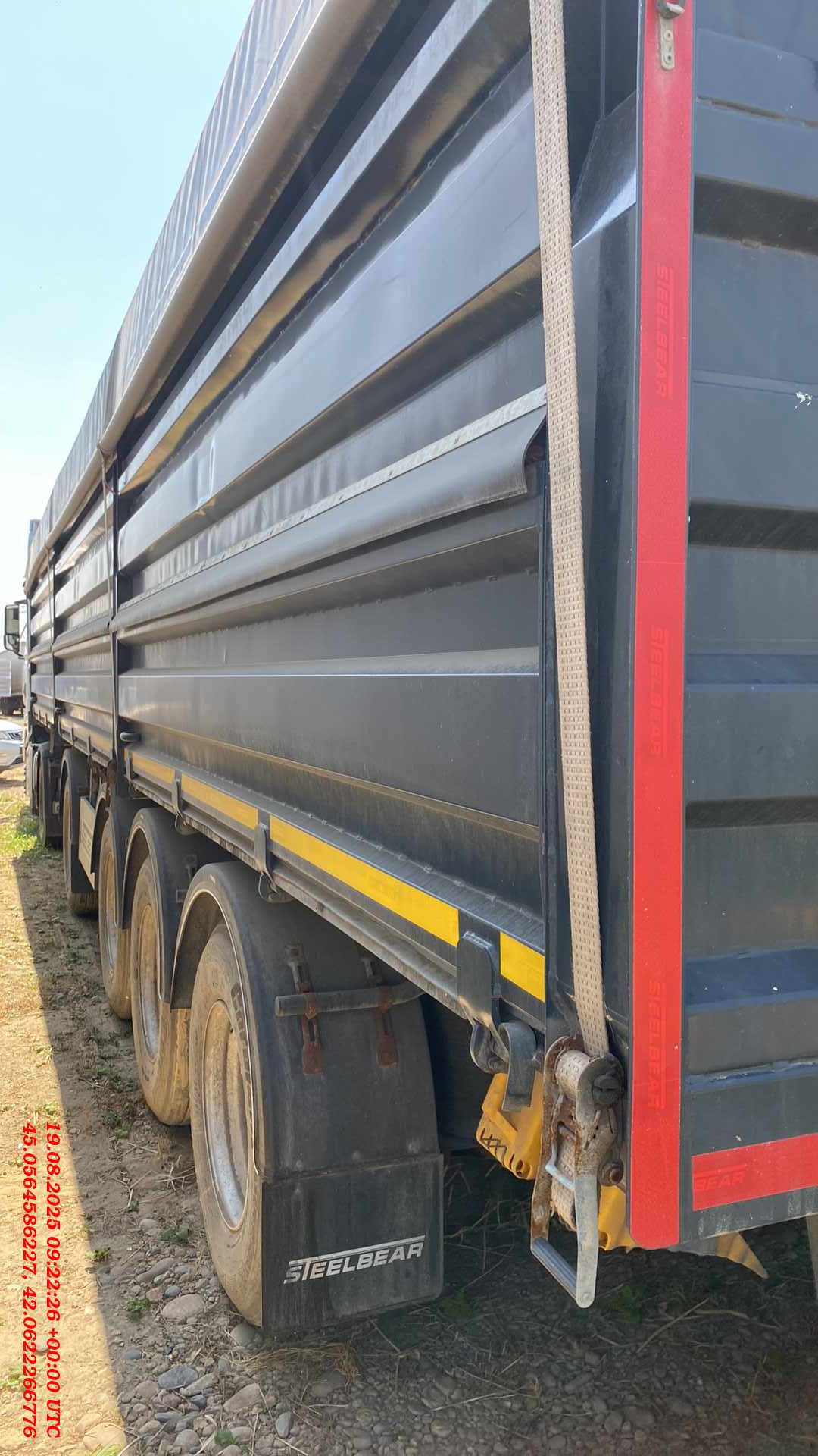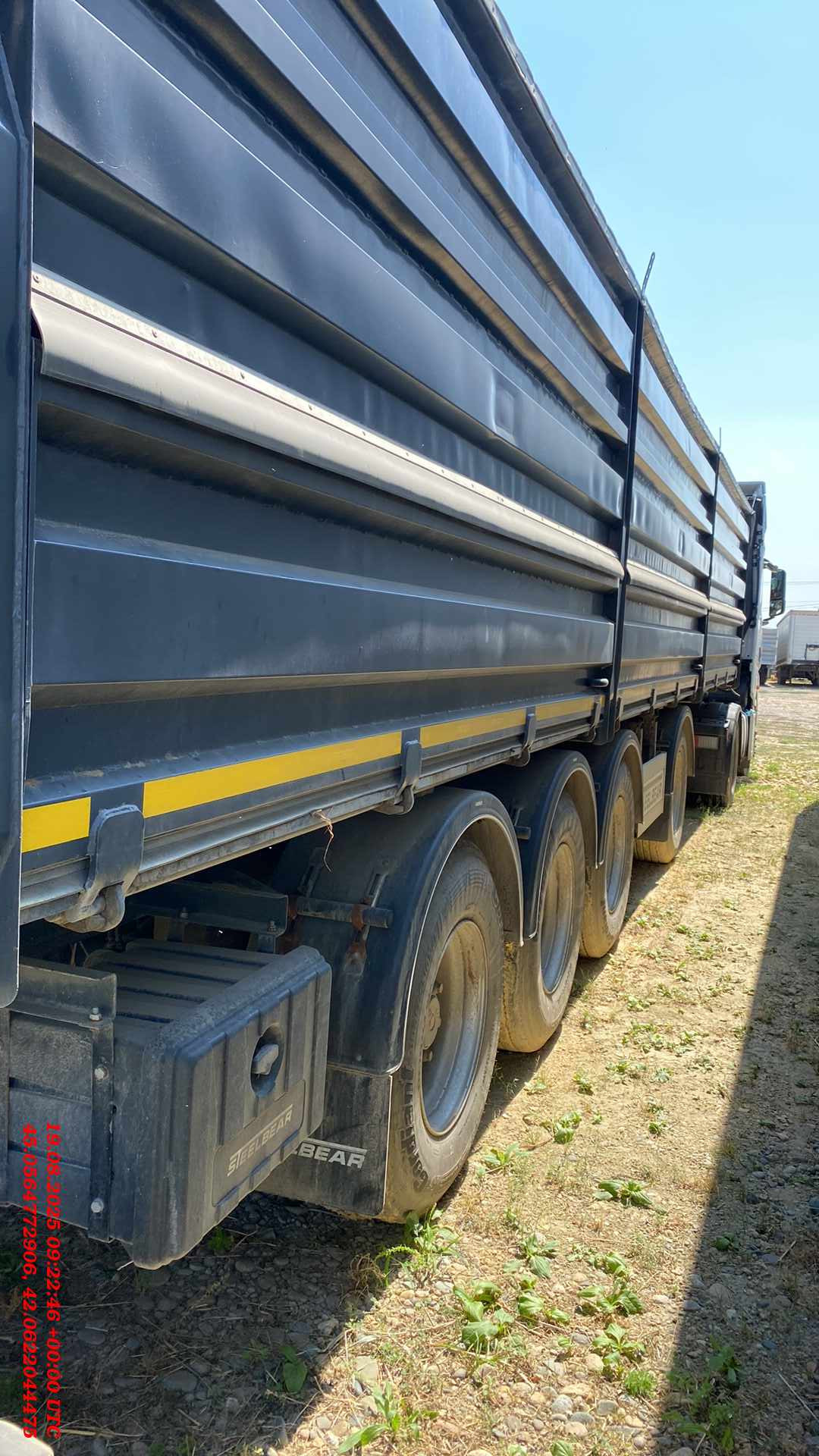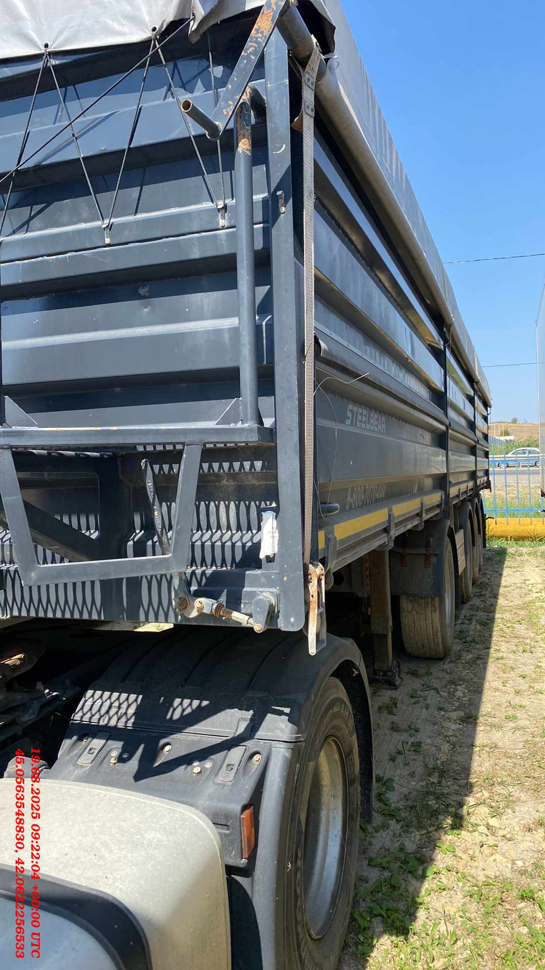 Полуприцеп Зерновоз Steelbear PF-41B Технически допустимая максимальная масса транспортного средства, кг - 47 000 Внутренние размеры Длина, м - 12,640 Ширина, м - 2,48 Высота, м - 1,90 Тент, шт - 1 Сматывающее устройство, шт - 2 Трап для обслуживания тента с двумя лестницами и поручнями Откидные борта с двух сторон, на верхней навеске, открываются отдельно, оборудованы резиновым уплотнителем, шт- 12 (6*2) Задний борт – распашные ворота с шиберами, оборудованы резиновым уплотнителем, шт - 2 Шасси: 4-осное Пневматическая подвеска Колёса: Ошиновка односкатная Диски: 11,75 х 22,5 Количество колёс: 8, 385*65*22,5 Электросистема: 24В Тормозная система: Тормозная система – дисковая ABS Пневмосистема: Подвеска интегрального типа, пневмоподвеска с ручным краном подъёма опускания