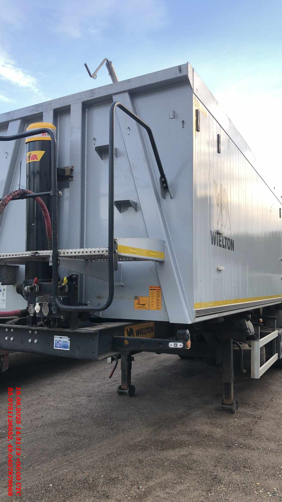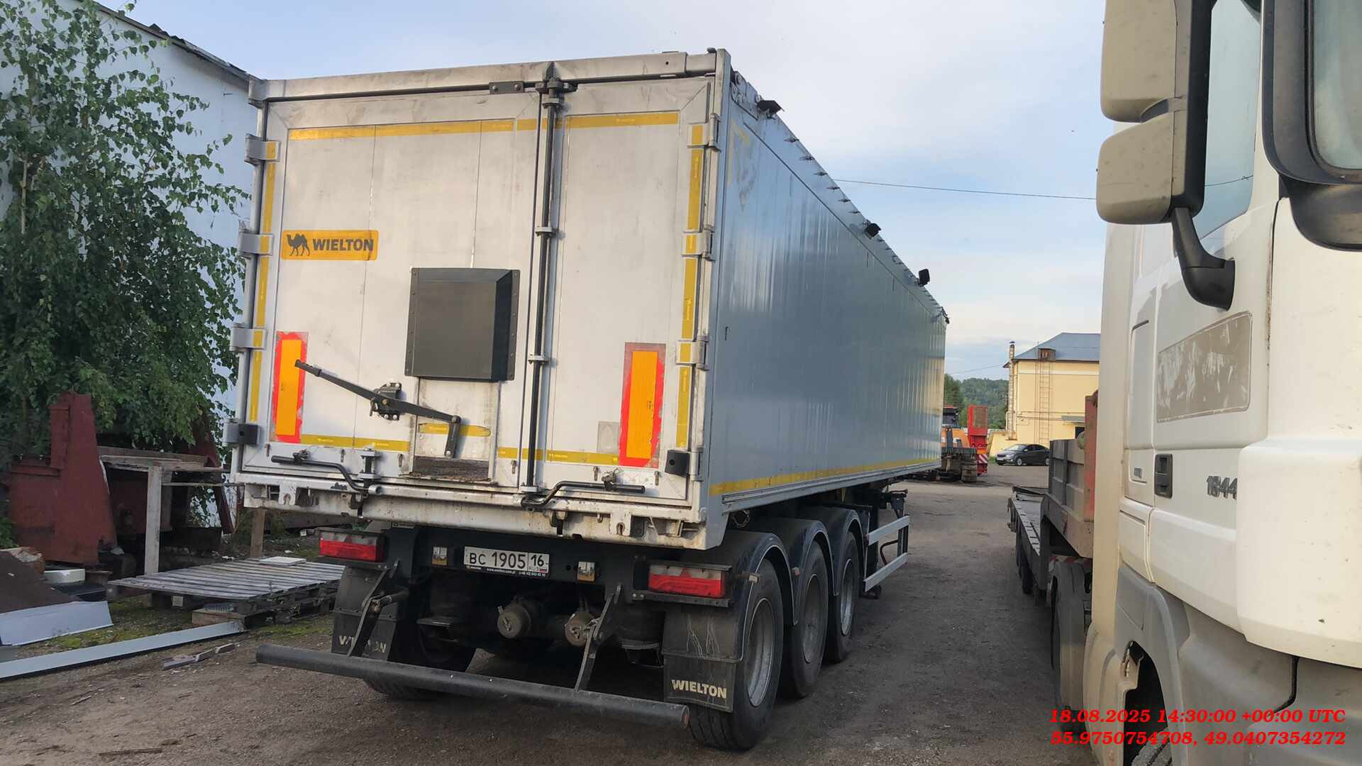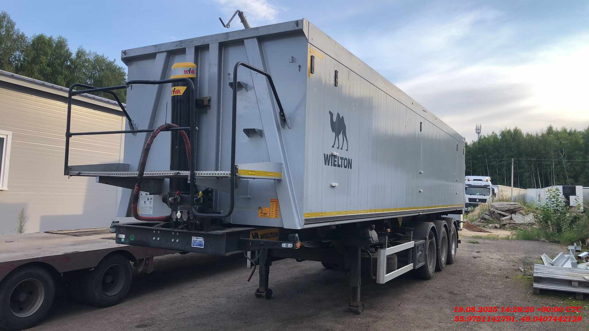 Ответственный за реализацию: Михеев Максим Номер лота: 000014152 Полная масса 42 000 кг, вес 7000 кг рама ▪ стальная конструкция шасси ▪3-осное дисковое SAF, техническая нагрузка оси до 9000 кг, ▪ пневмоподвеска, клапан H-S ▪ подъёмная первая ось, ▪ плита сцепки с 2-дюймовым королевским шкворнем, ▪ двухдиапазонные опорные ноги, ▪ боковые противонаездные предохранители в соответстии с ECE, ▪ задний буфер в соответствии с ECE тормозная система ▪ соответствует ECE, wabco ▪ автоматическая регулировка тормозов, ▪ антиблокировочная система ABS/EBS в соответствии с ADR грузовой отсек ▪ кузов выполнен из листового алюминия и профилей, ▪ лого WIELTON на боковых стенках, ▪ лестничная площадка на раме ▪ задний затвор – клапан-двери с ссыпным лючком ▪ гидроцилиндр без возвратного клапана HYVA, ▪ тент, сворачивающийся на бок ▪ тент фиксируется ремнями с устройством натяжки Cтяжная балка Автоматический спуск подушек электрическое оборудование ▪ 24 v согласно с нормами ECE i ADR, ▪ задние огни в комплекте с сигналом заднего хода, противотуманной фарой, указателями поворота и треугольниками отражателя света ▪ освещение номерного знака, ▪ габаритные огни, ▪ боковое освещение, ▪ щиты отражателей света, ▪ 2 подключительные розетки и розетки ABS/EBS на передней стенке без соединительных проводов лакировка ▪ все стальные элементы перед лакировкой дважды поддаются дробеструйной обработке, ▪ лакировка производится в лакировочных камерах ▪ рама в серый цвет RAL 7021